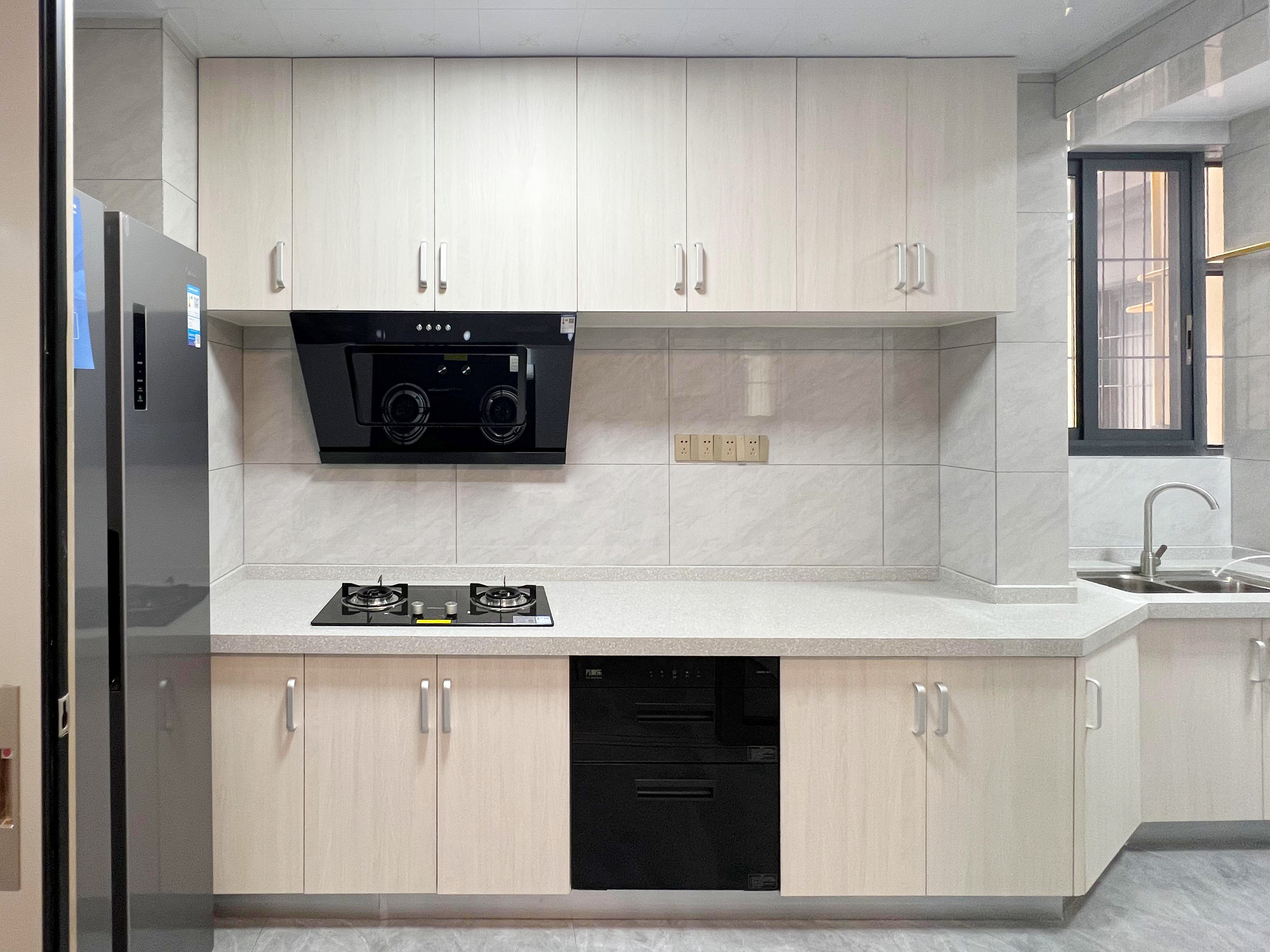 廚房做成了開(kāi)放式的,一來(lái)光線(xiàn)更好,二來(lái)也能增加空間上的延伸,讓整個(gè)廚房空間不至于顯得很小,在應(yīng)有的空間里生成更有效的空間實(shí)現(xiàn)設(shè)計(jì)的巧妙。