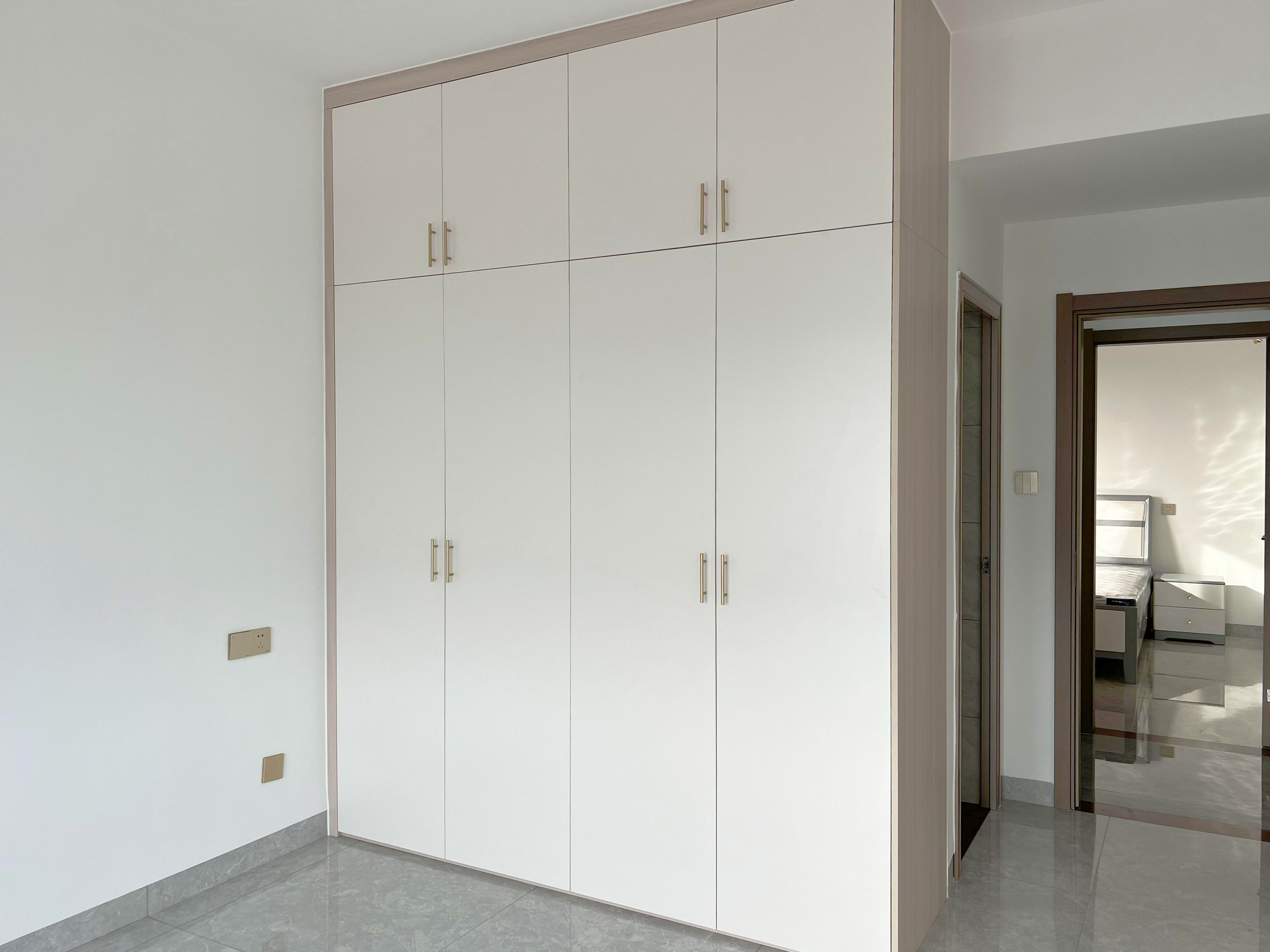 主臥為了更好的收納房間衣物等,注重了收納這部分的功能,在床尾位置直接做成了一排的到頂衣柜,保留走動(dòng)路線(xiàn)以后更好的利用到了床尾位置,其他地方簡(jiǎn)單化裝修,節(jié)省預(yù)算,也會(huì)有簡(jiǎn)約耐看感。