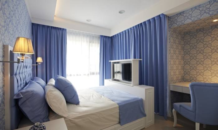 地中海風(fēng)格的房屋常會(huì)用藍(lán)色來(lái)裝飾臥室,不管是湛藍(lán)色還是淺藍(lán)色,都能夠很輕易地營(yíng)造出一種輕快、放松、舒適的氛圍。