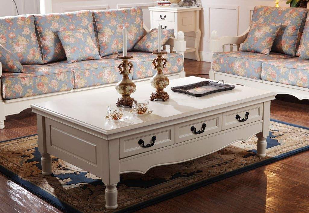 田園風的茶幾通常是以白色居多,加以一些雕花小設(shè)計,跟碎花不相似,卻又異曲同工之妙。
