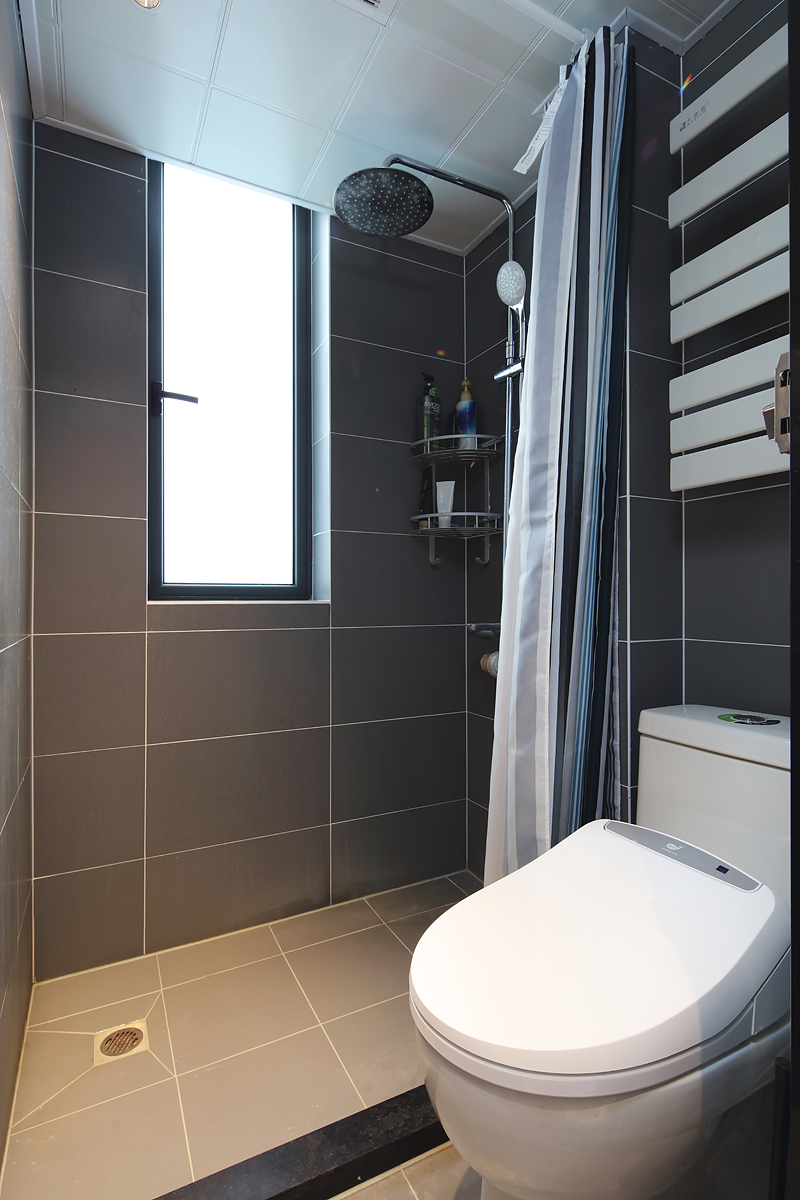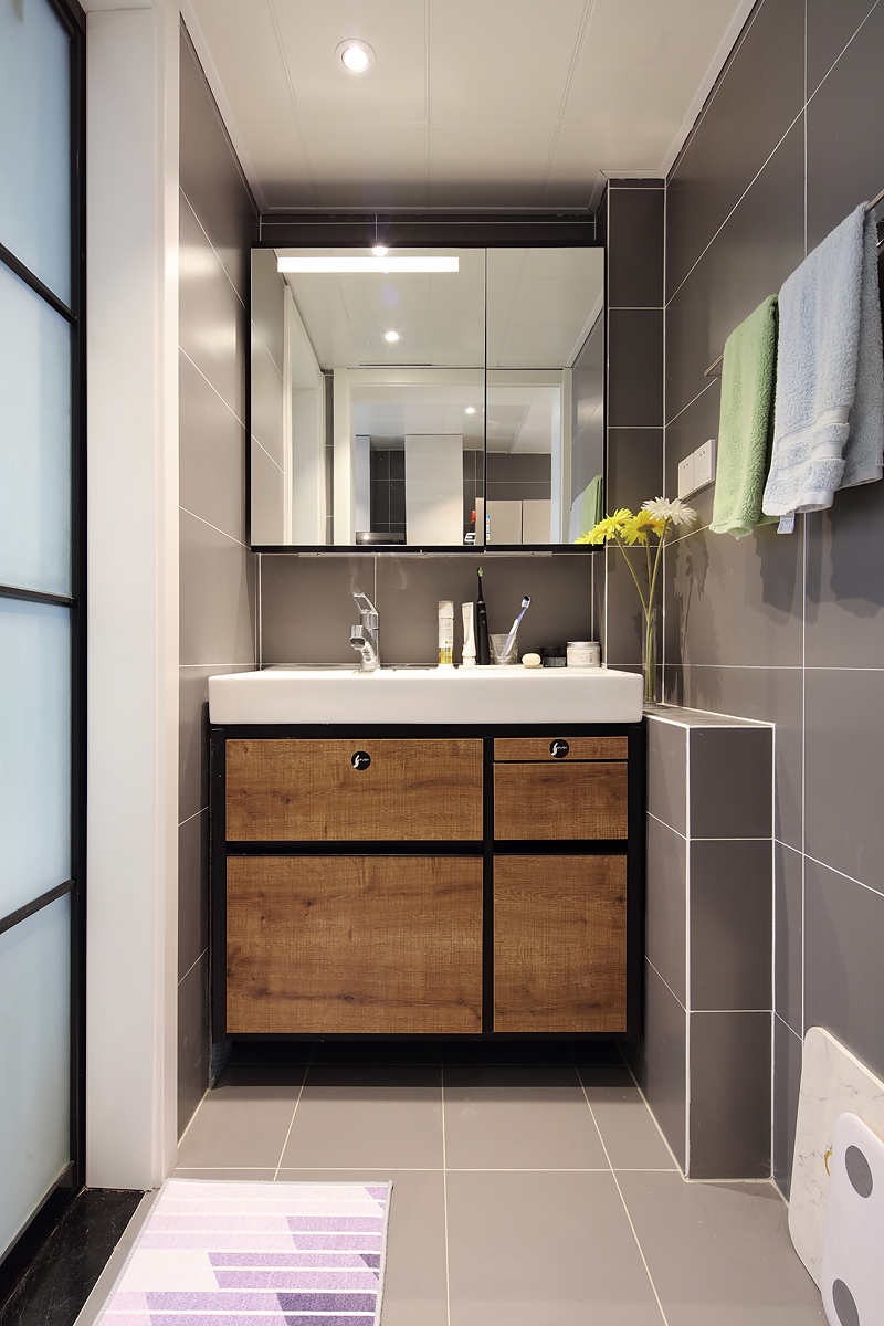 衛(wèi)生間被一分為二劃為兩個(gè)區(qū)域,盥洗區(qū)和衛(wèi)浴區(qū)。兩個(gè)區(qū)域有隔斷,使用的時(shí)候互不影響。