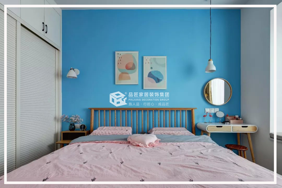 主臥用一面藍(lán)色的背景墻