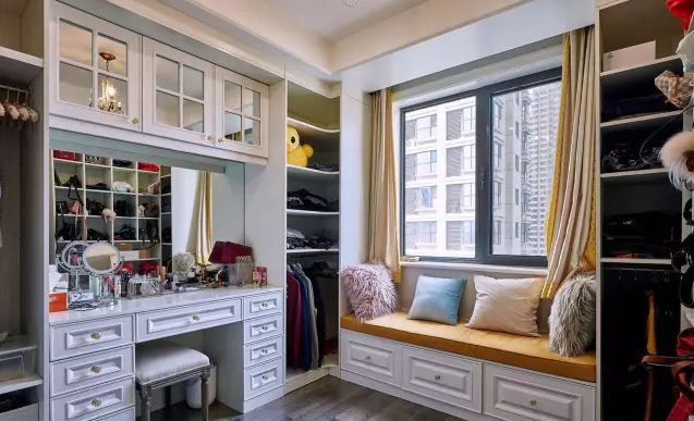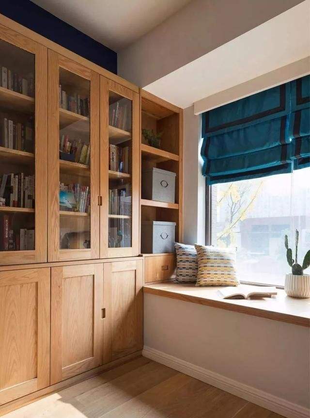 平窗改飄窗最好的辦法,就是訂做一個和窗臺差不多的矮柜,或者定做一個一體式的儲物柜+矮柜,既能打造出飄窗的效果,又增加了儲物的空間。矮柜用來放置一些書籍,可以隨手拿起閱讀,而且也方便整理,很是合適。