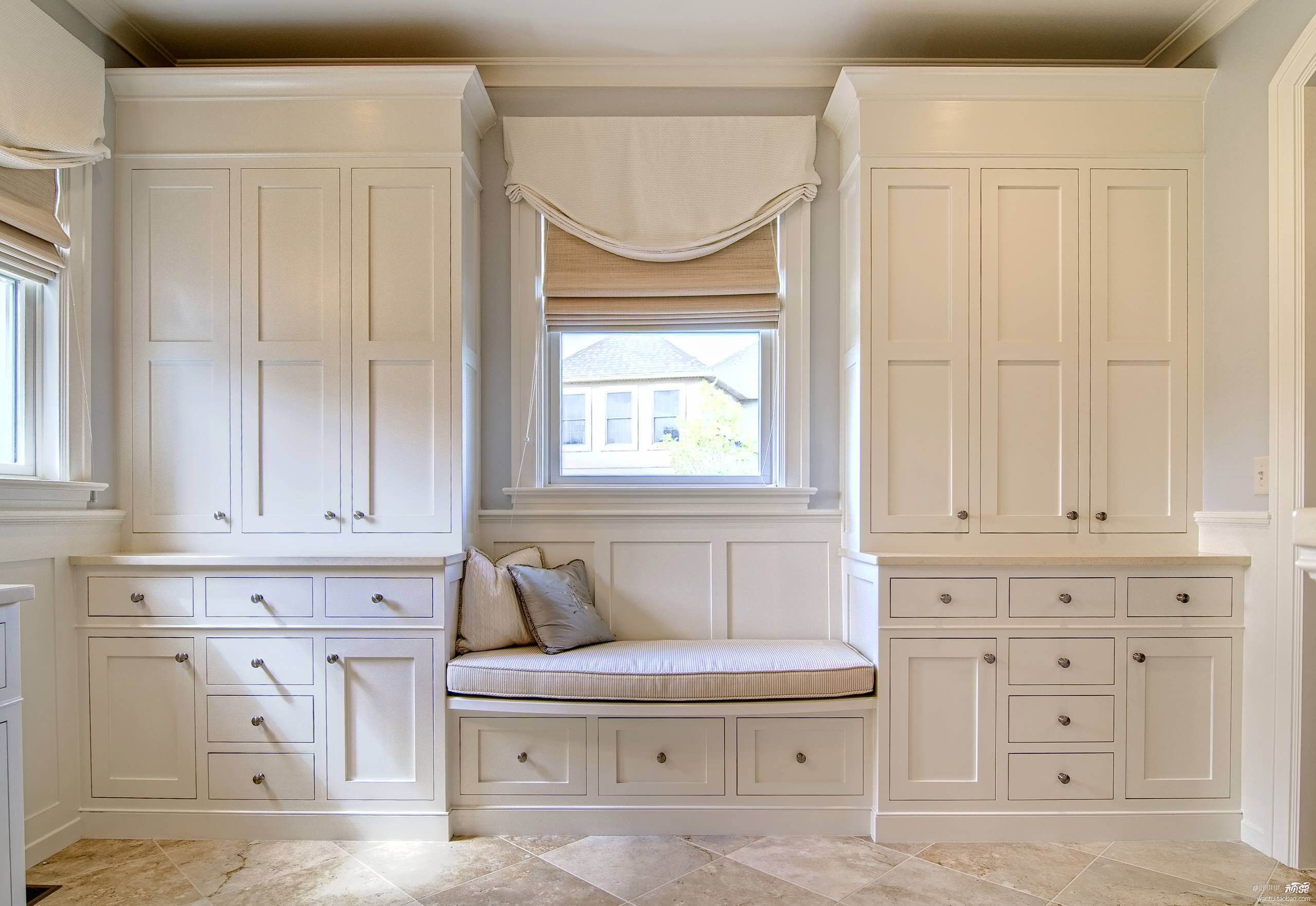 1、定制的款式要和整體的家居風格相合適,否則飄窗就會看起來十分突兀。