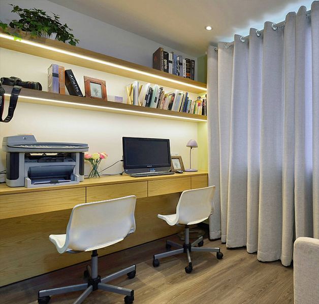 對(duì)于經(jīng)常在家學(xué)習(xí)或者辦公的業(yè)主來說,書房隔音十分重要。如果家里不巧處于路邊或者底層,那么選擇隔音窗還是很有必要的。除此之外,還可以在吊頂上多下功夫,用吸音石膏板和苯板搭配做吊頂裝飾,效果是相當(dāng)卓越的。