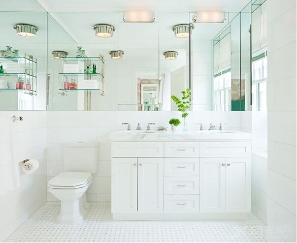 要想衛(wèi)生間看起來寬敞明亮,在選擇衛(wèi)生間瓷磚或者墻面主色調(diào)的時(shí)候,就要注意選擇明亮的淺色調(diào)。一般來說,白色最為常見,但如果你覺得白色太過死板單調(diào),可以選擇淺藍(lán)、淺灰、黃色等顏色。