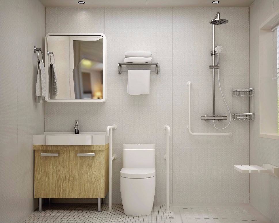在衛(wèi)生間面積不大的情況下,要盡量避免選購尺寸大、裝飾華麗的潔具,這只會(huì)讓整個(gè)空間比例失調(diào),顯得十分擁擠。對(duì)于小戶型的衛(wèi)生間來說,可以適當(dāng)精簡潔具,并且注意保持潔具之間的距離。