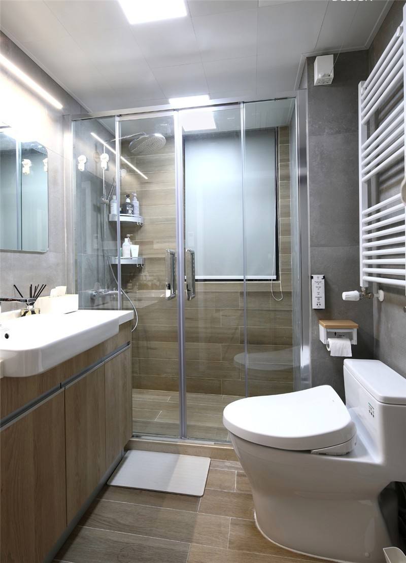 即使是小戶型的衛(wèi)生間,也有一個(gè)想做干濕分離的愿望。這種時(shí)候,一字型的玻璃隔斷或者半玻璃隔斷,都是十分合適的方法。玻璃隔斷的方式能讓更多光線透入淋浴房,整體效果也會(huì)更為寬敞。