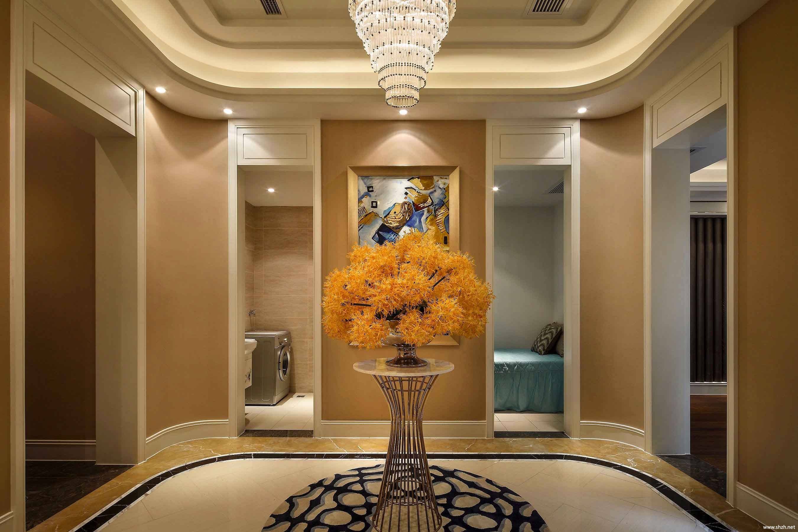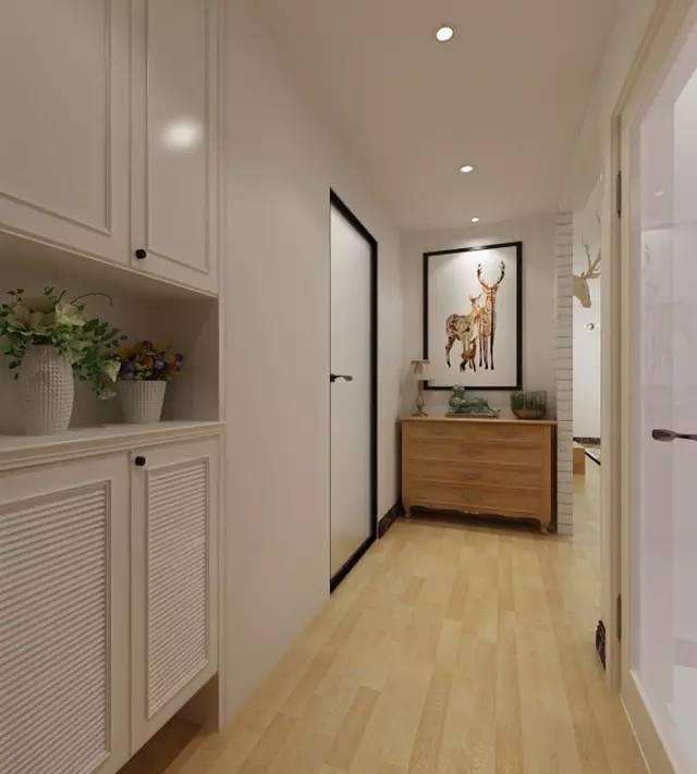 如果不想破壞墻面整體的連貫性和美感,可以考慮用擺飾裝飾走道。在走道處擺上一張大小合適的桌子,擺放一些花瓶、綠植或者工藝品,搭配上合適的走道燈,整體意境會(huì)十分不一樣。桌子還可以用來(lái)隨手放置鑰匙之類的小物件,避免因?yàn)殡S手亂扔而找不到的窘境。