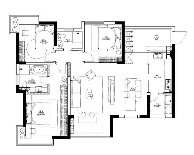 我們的設計師跟夫妻二人溝通了很久,最終把兩人的喜好進行了最大的結合,混搭出了這樣一套日式、簡約、北歐三居室。