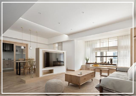 原木色裝飾搭配時下流行的無主燈簡約頂面