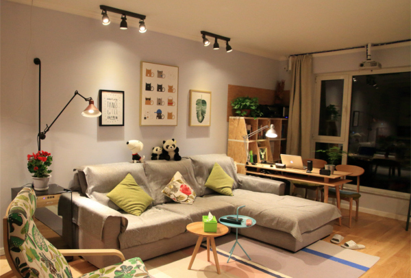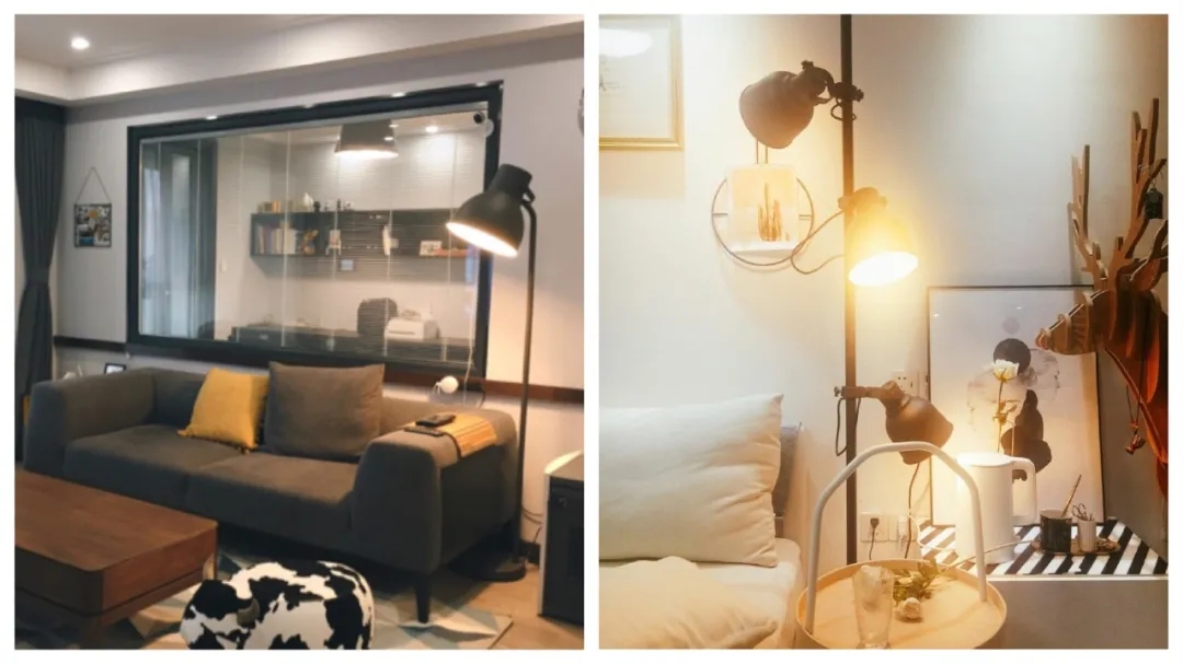 柔軟的沙發(fā)是一個非常舒適的閱讀區(qū),閱讀時直接照明光線可以使注意力集中,可調節(jié)高度和燈罩角度的落地燈是最好的選擇,最低高度在1.2m~1.3m為宜,燈光的色溫要低于5000K,高于這個指標會有嚴重的“藍光危害”,顯色度要高于90,低于這個指標容易造成視覺疲勞。