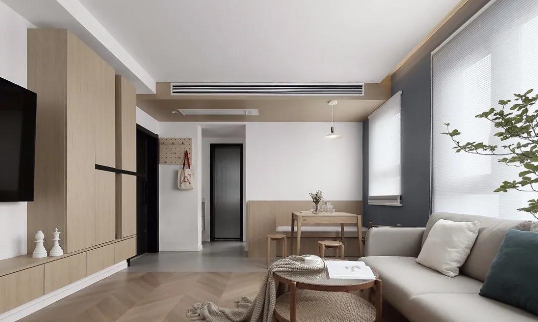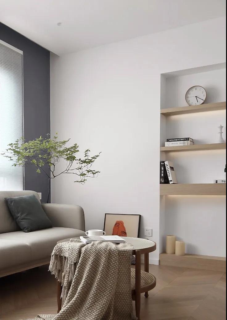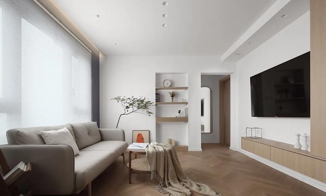 原木是日式風(fēng)格的重要元素,柔白色與原木色在空間中交互融合,在給人一種置身自然的舒適感,魚骨拼的木質(zhì)地板烘托出空間的質(zhì)感又保留了溫馨的質(zhì)感。