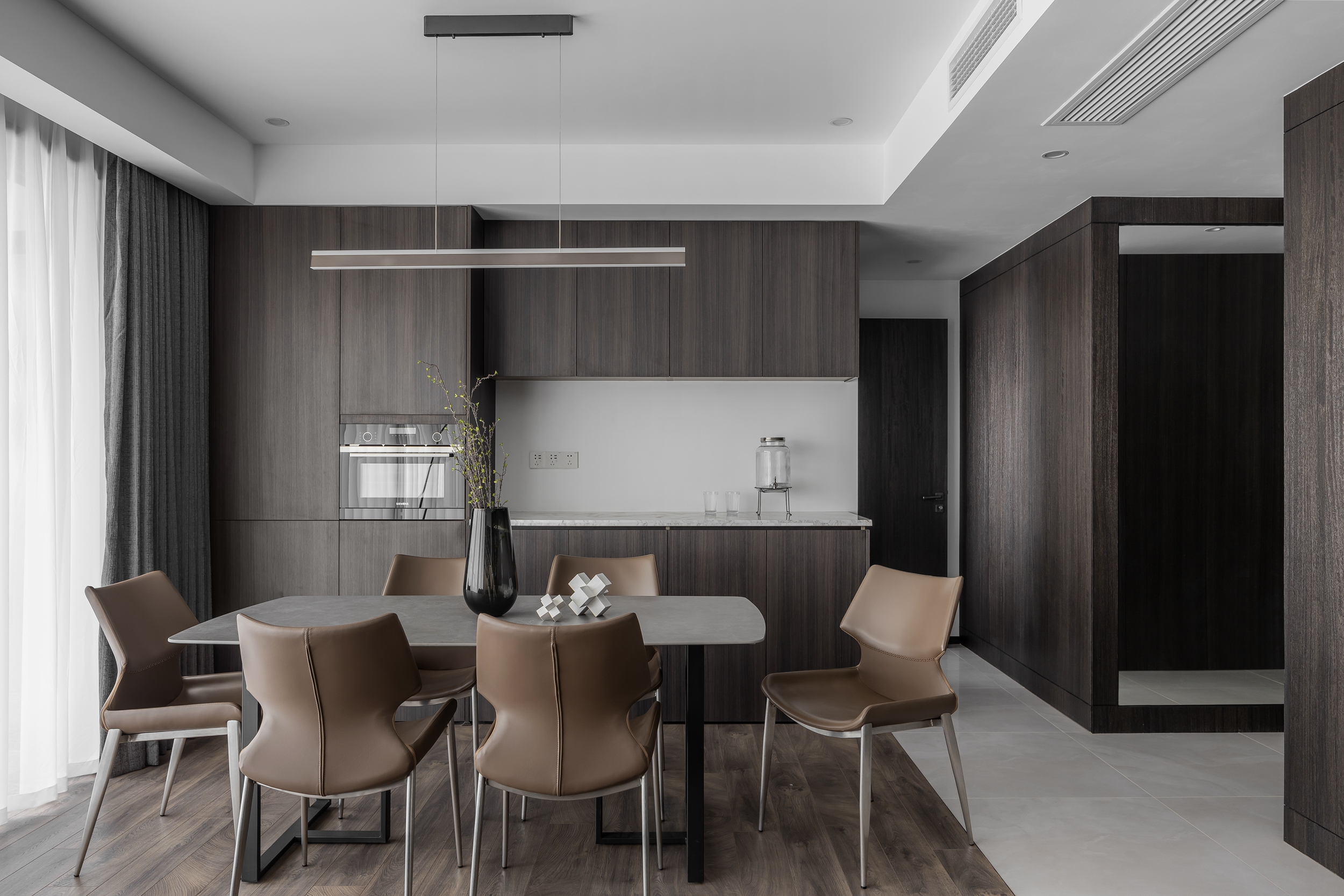 不需要復(fù)雜的裝飾和色彩,選擇現(xiàn)代、舒適、時尚的設(shè)計理念。通過對材質(zhì)的把控,將空間功能的切割與細(xì)膩入微的美學(xué)來營造沉浸式體驗的居家環(huán)境。