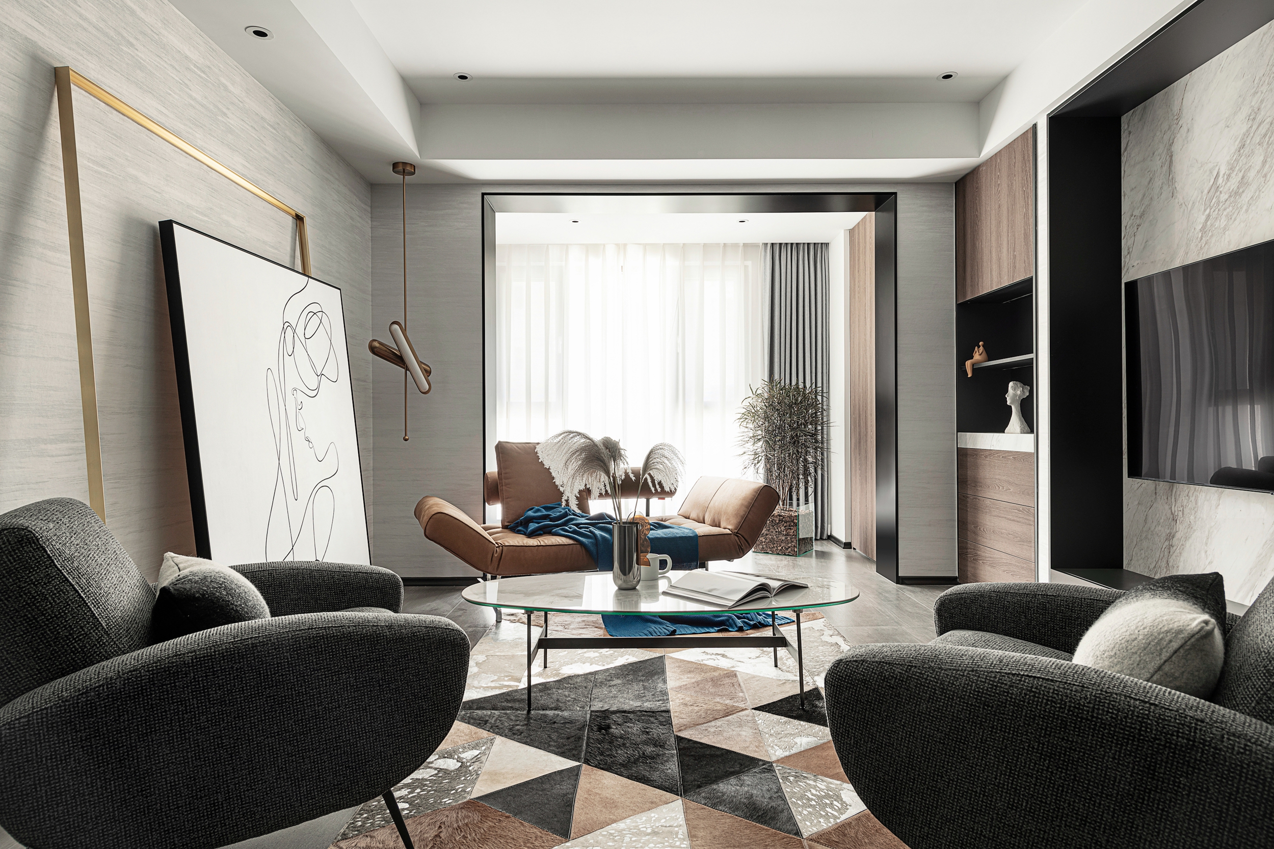 南寧美的旭輝城120平米現(xiàn)代簡約風案例效果圖