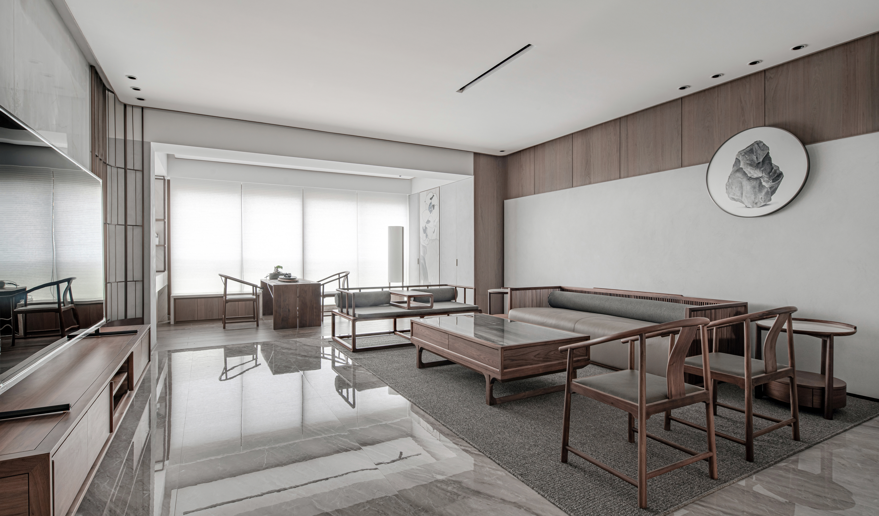 南寧中房翡翠灣毛坯房145平米新中式風(fēng)格裝修案例效果圖