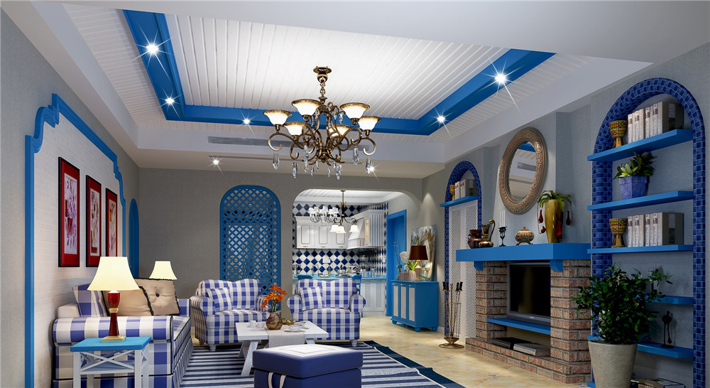 南寧親水灣毛坯房88平米地中海風格裝修案例效果圖