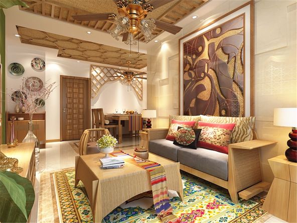 這一套風(fēng)格同時融合了東南亞風(fēng)格和美式風(fēng)格的特色,用深色去營造華貴,用綠植來點綴空間。