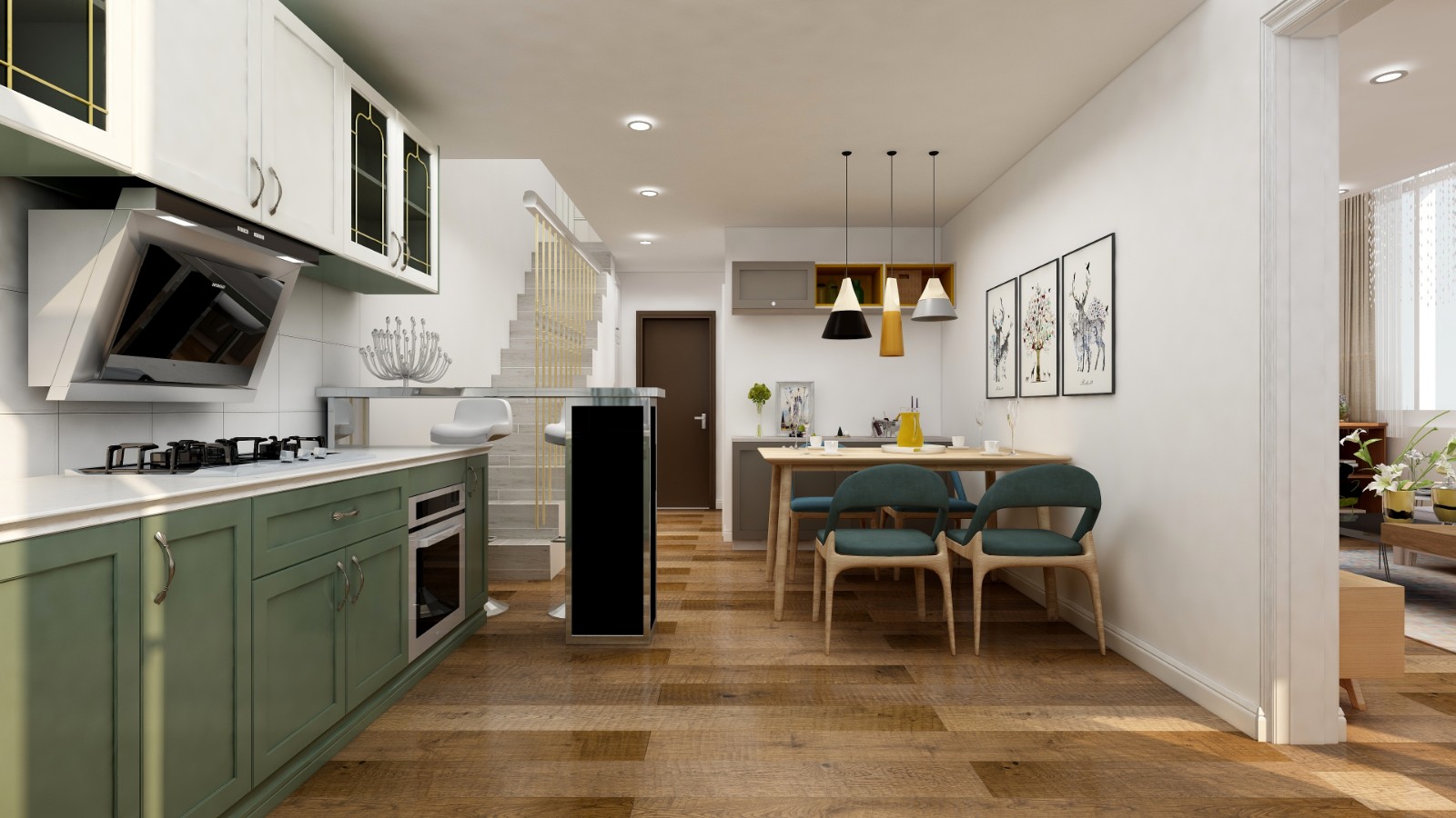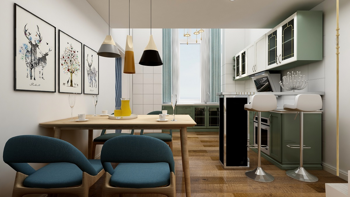 清新時尚的綠色和木地板一搭配,就能營造出一種北歐風(fēng)特有的簡約、自然的家居氛圍,設(shè)計上也十分人性化,注重空間的功能性。
