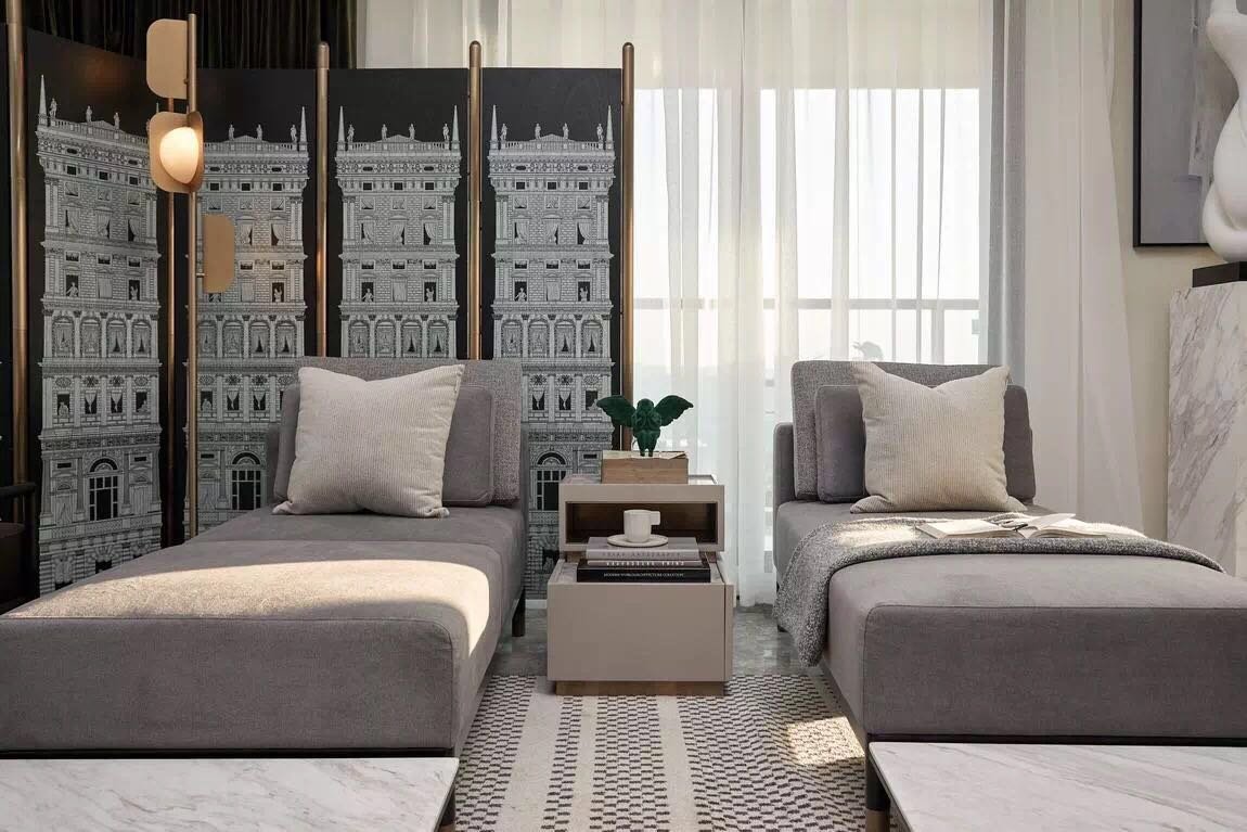 這套新中式的三居室,并沒有刻意營造中式的氛圍。而是通過線條與色彩的變化,營造了一種中式的禪意。