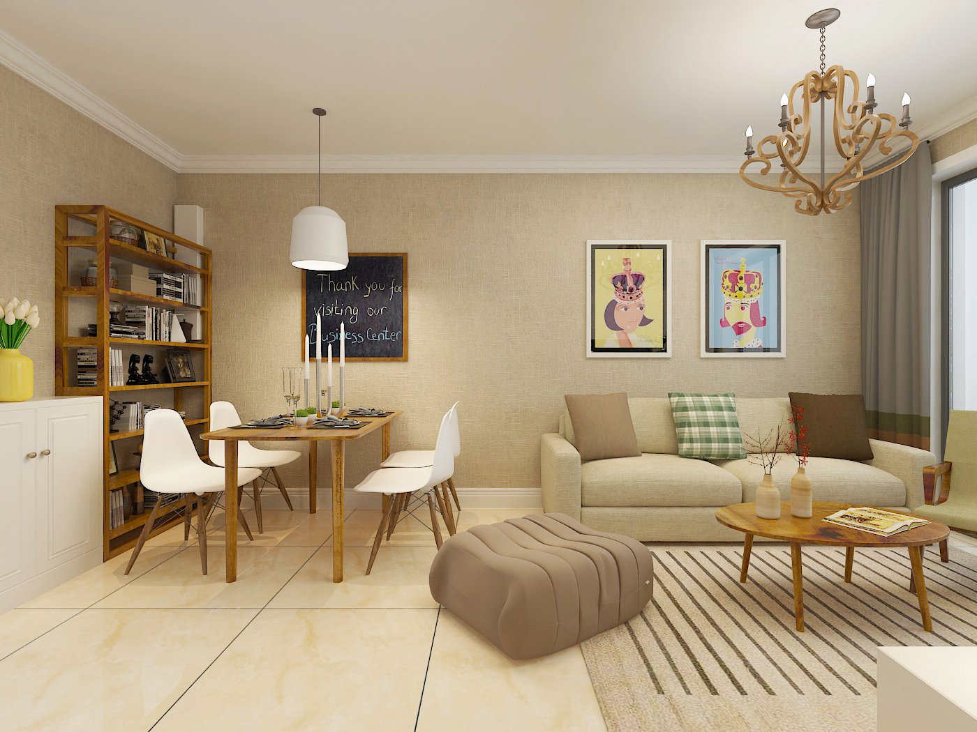 南寧瀚林錦城毛坯房78平米美式風格裝修案例效果圖