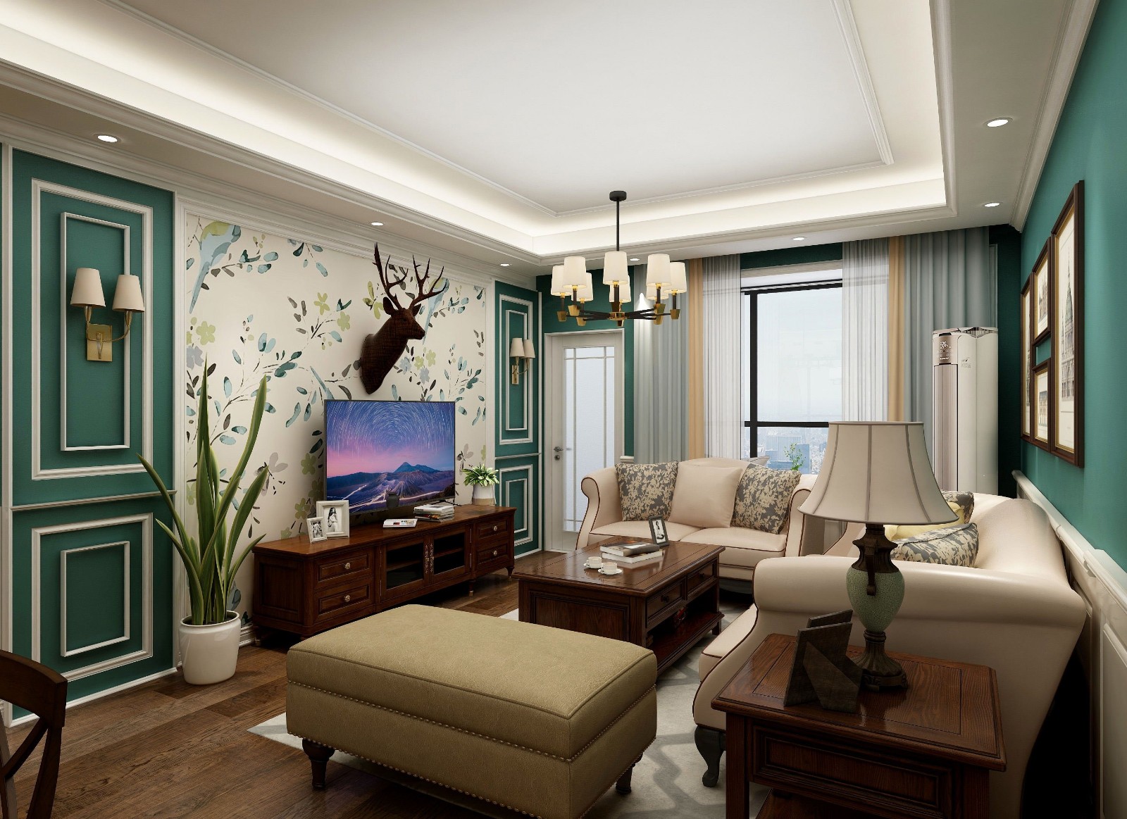 南寧瀚林錦城毛坯房78平米美式風格裝修案例效果圖
