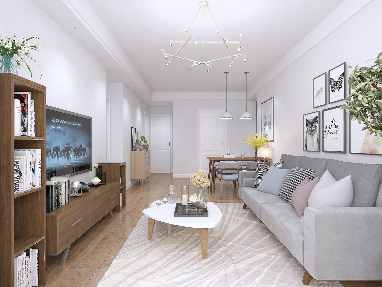 南寧瀚林錦城毛坯房78平米美式風(fēng)格裝修案例效果圖