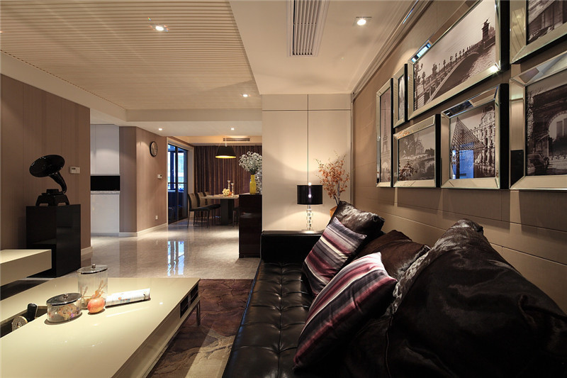 深色調(diào)本來(lái)會(huì)顯得壓抑與沉悶,但是經(jīng)過(guò)燈光的調(diào)節(jié)以后,就變成了穩(wěn)重與大氣。新古典的氣質(zhì)體現(xiàn)在設(shè)計(jì)的方方面面,適合成熟穩(wěn)重的精英人士。