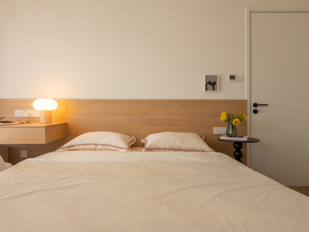 臥室,作為心靈休憩的圣地,無需繁復(fù)的裝飾與過多的家具堆砌。利用靠窗位置,將梳妝臺(tái)巧妙延伸并與飄窗相融,既擴(kuò)大了梳妝區(qū)域,又讓自然光充分灑落,增添了一份明亮與愜意。暖黃色的墻面搭配原木色的護(hù)墻板,將整個(gè)空間溫柔地包裹起來,營(yíng)造出一種溫馨而寧?kù)o的居家環(huán)境,讓人徹底放松,找回內(nèi)心的平靜。