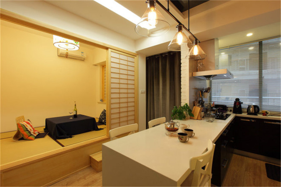 餐廳旁邊的日式榻榻米,是根據(jù)業(yè)主的要求,特意設(shè)計(jì)出來(lái)的空間。有代替書(shū)房和會(huì)客廳的功能,關(guān)上推拉門以后,不用擔(dān)心會(huì)被打擾。
