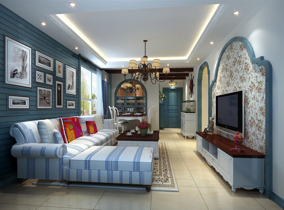 南寧親水灣毛坯房88平米地中海風(fēng)格裝修案例效果圖