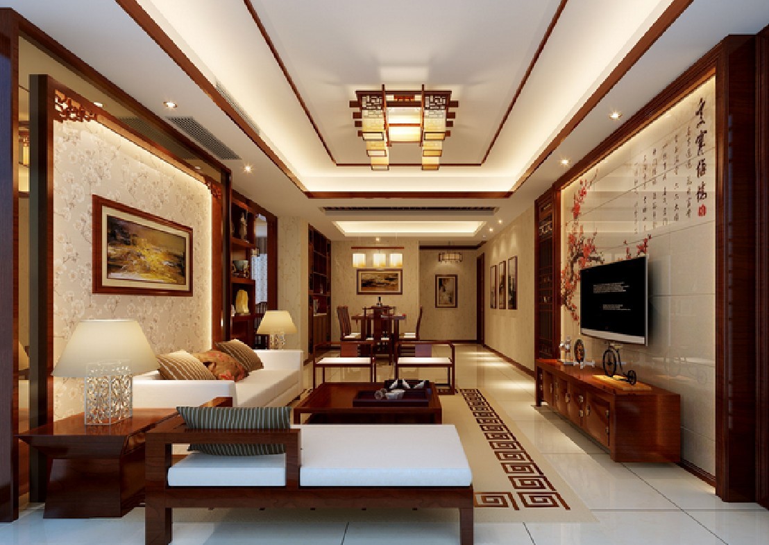 南寧億鼎中心毛坯房96平米中式風格裝修案例效果圖