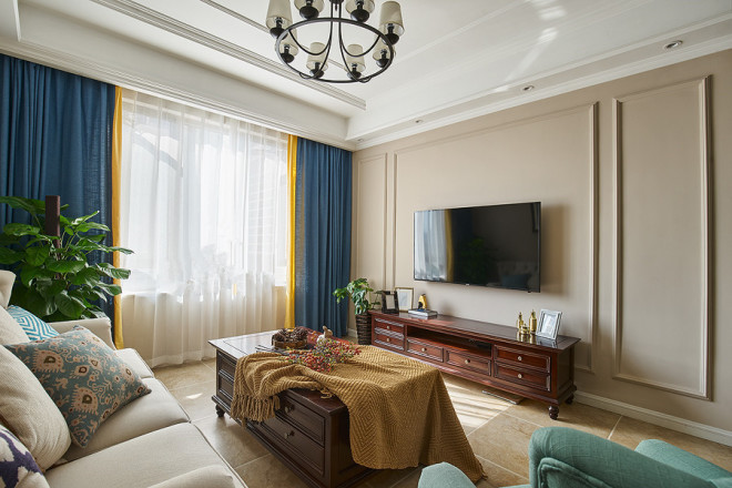 南寧瀚林錦城毛坯房78平米美式風格裝修案例效果圖