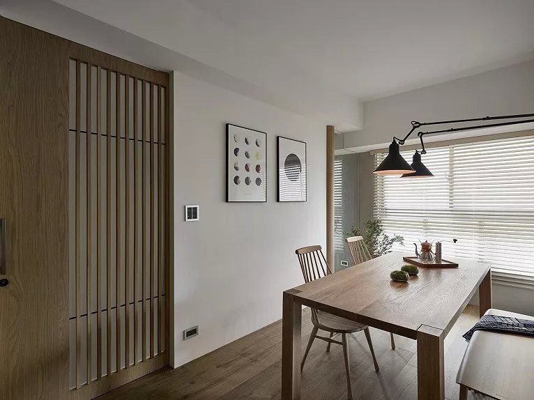 客廳和餐廳同屬一個(gè)空間,因?yàn)椴晒夂?,加上沒(méi)有過(guò)多地?cái)[放繁瑣的家具,所以整個(gè)空間非常寬闊明亮。