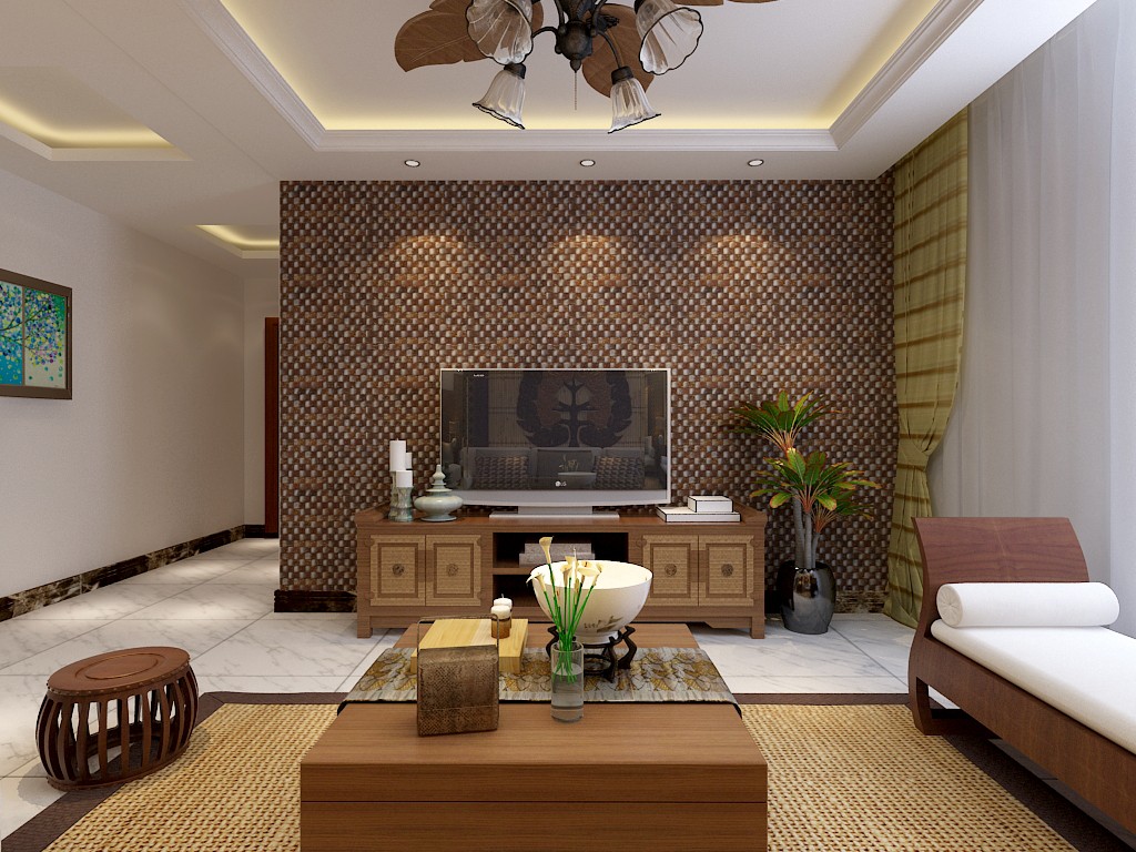 南寧江璟湖109平米東南亞風格案例效果圖