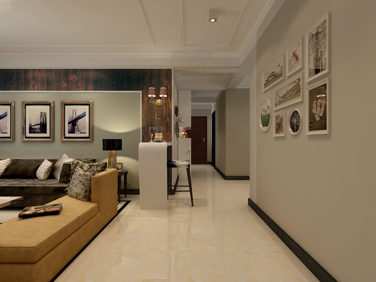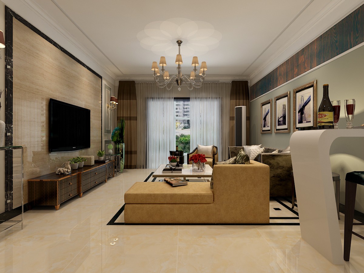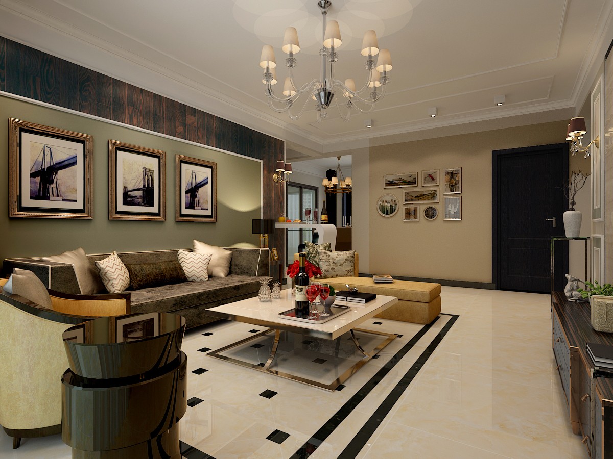 南寧瀚林錦城毛坯房78平米美式風格裝修案例效果圖