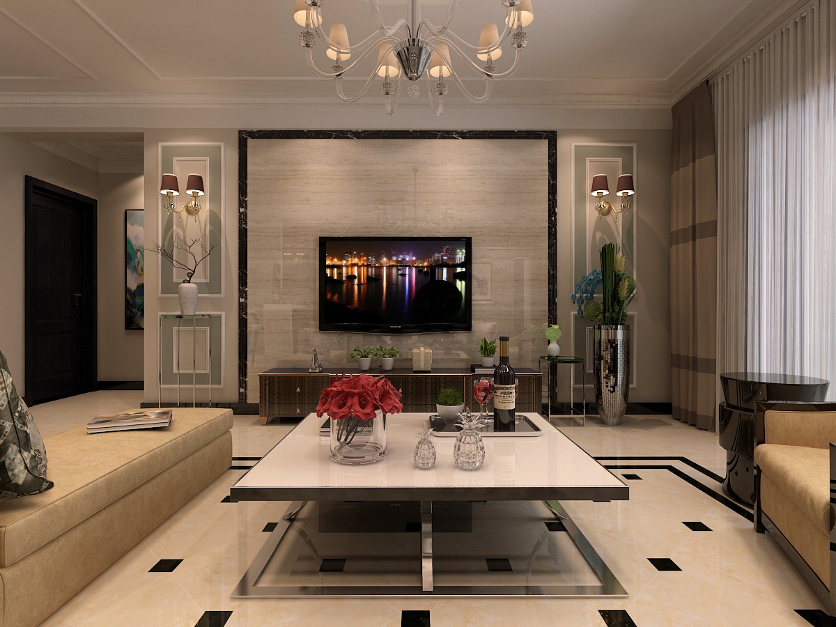 南寧保利·君悅灣毛坯房160平米新古典風格裝修案例效果圖