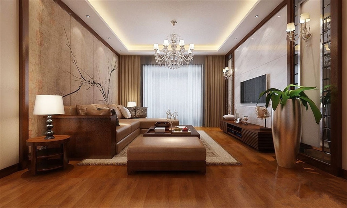 南寧億鼎中心毛坯房96平米中式風格裝修案例效果圖