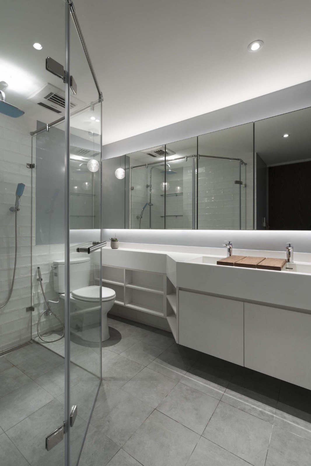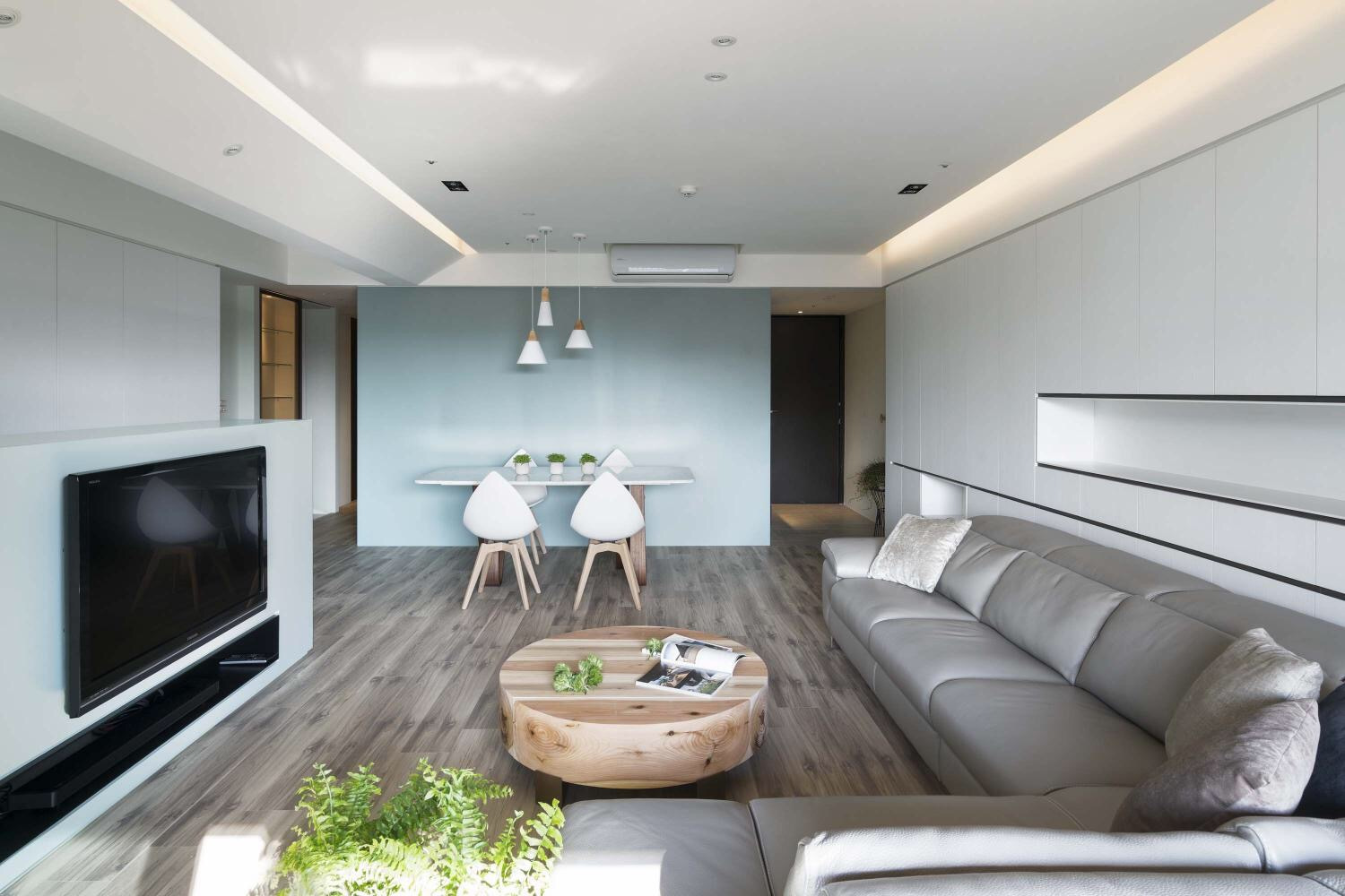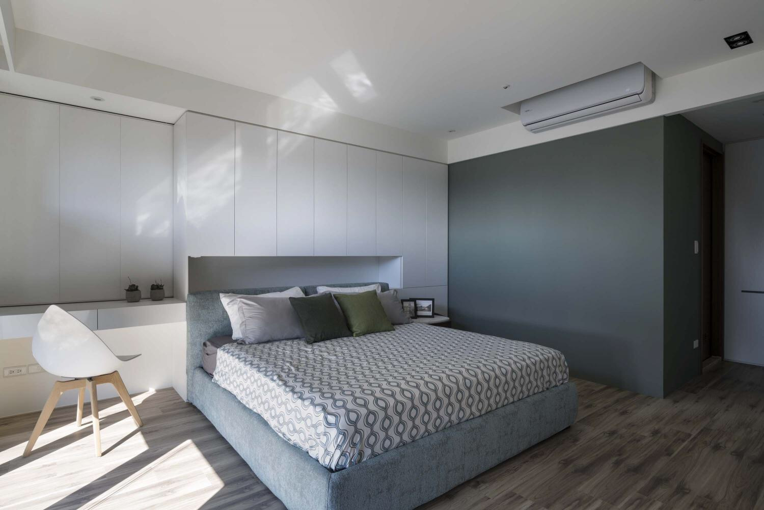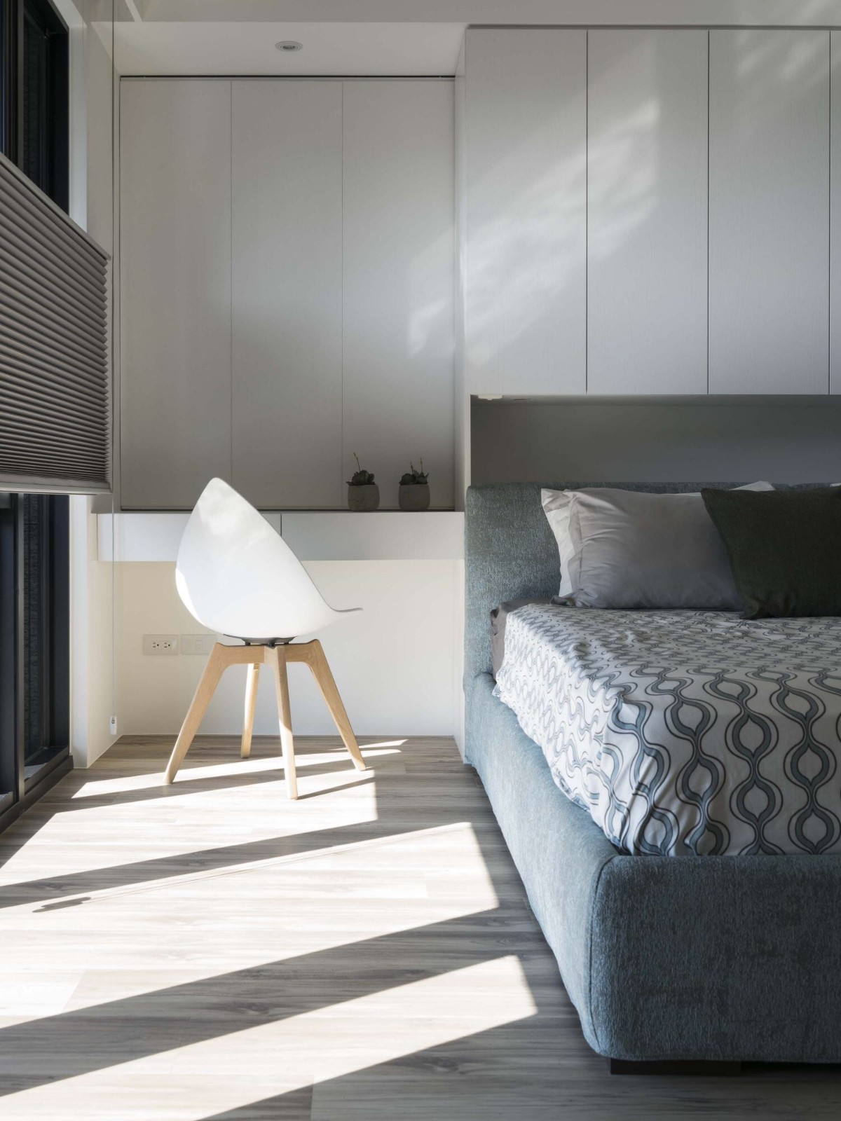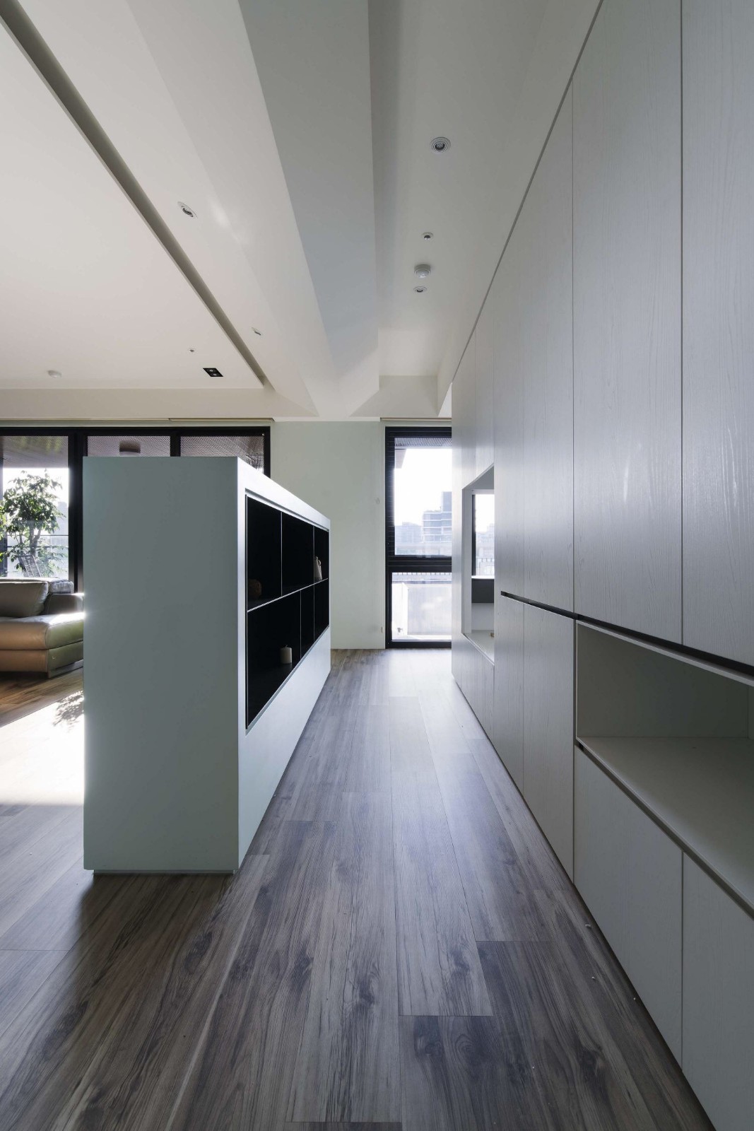 這套房子以黑白灰為主色調(diào),但是某幾處墻面用了帶點(diǎn)灰調(diào)的淺藍(lán)色作為裝點(diǎn),簡(jiǎn)單的同時(shí)也不缺乏設(shè)計(jì)感。房屋里的柜子幾乎都是定制的,它們滿滿當(dāng)當(dāng)?shù)卣紦?jù)了一整面墻,跟整體風(fēng)格的適配性相當(dāng)?shù)貜?qiáng),也不會(huì)占用過(guò)多的面積,真正做到了美觀又實(shí)用。