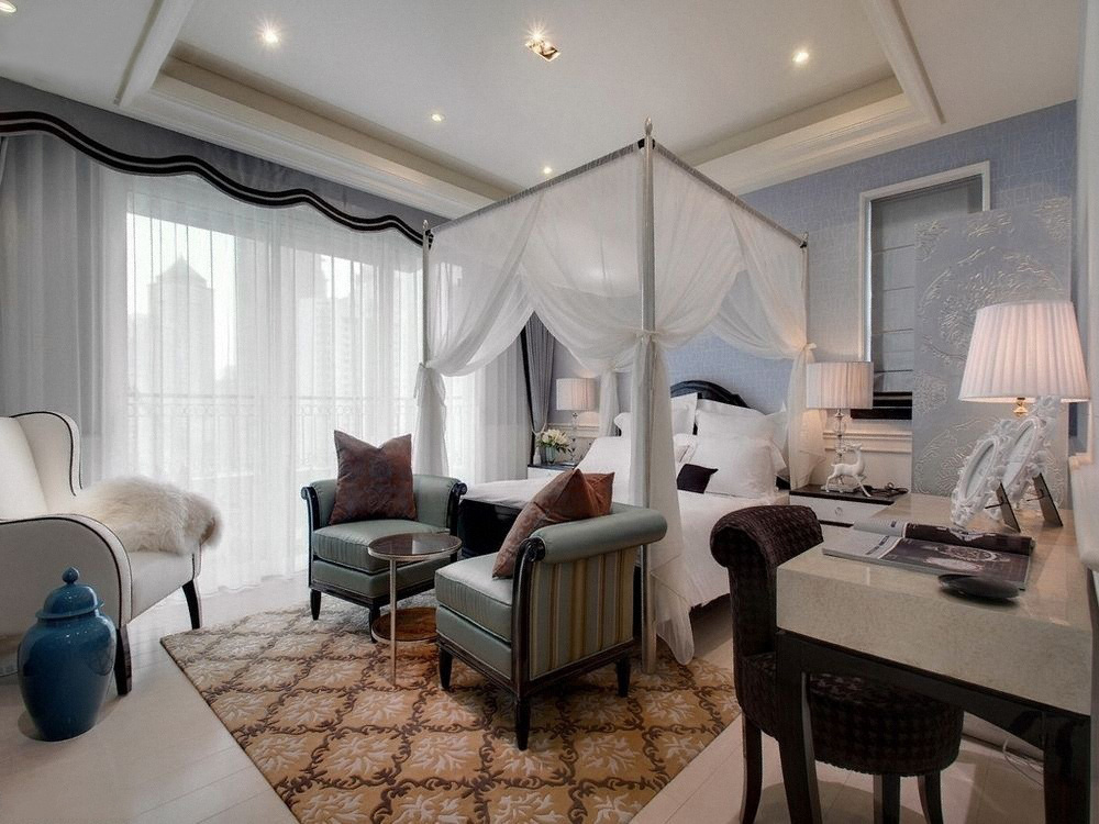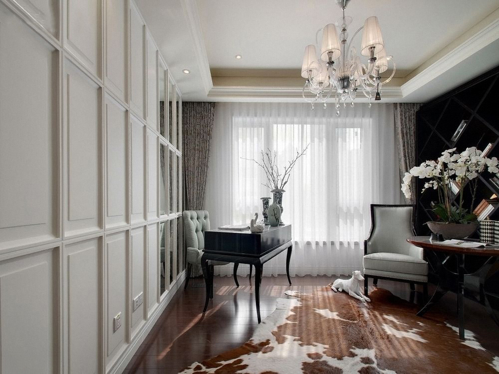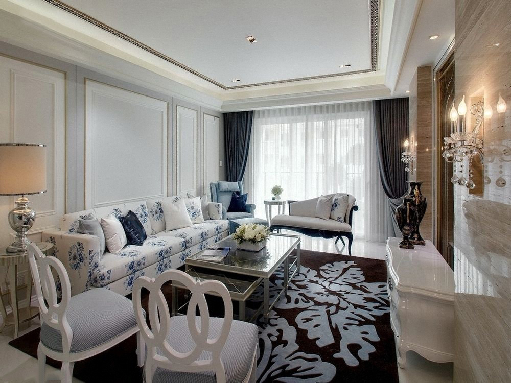 這套新古典風(fēng)格的案例有很濃重的混搭風(fēng)味道,融合了古典風(fēng)格、現(xiàn)代風(fēng)格的特色,既有一種華麗感,也有一種時(shí)尚感??蛷d的空間比較大,所以選用的是一些較為大氣的家具,打造了一種輕奢的貴氣感。相比之下,臥室的裝潢就要簡(jiǎn)單很多,舒適為主。