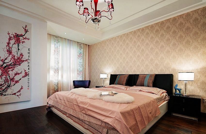 這套中式風(fēng)格為了迎合業(yè)主的喜好,用了許多中式的家具去裝修,深色的中式家具成熟穩(wěn)重,低調(diào)不張揚(yáng)??蛷d和玄關(guān)處用鏤空的中式屏風(fēng)隔開,格調(diào)高雅又富有新意。但是女兒房的設(shè)計(jì)沒有必要那么沉悶,所以設(shè)計(jì)師在裝飾女兒房的時(shí)候還是以粉白色為主,活潑夢(mèng)幻又清新舒適。
