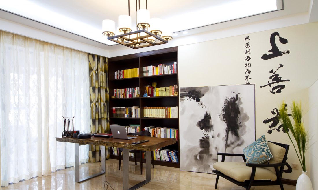 后現(xiàn)代風(fēng)格成熟穩(wěn)重,最擅長雜糅其他風(fēng)格的特色,融合其他風(fēng)格的優(yōu)勢,蘊含著一種“海納百川”的文化底蘊。所以你在這套三居室里,能看到中式風(fēng)的書房,也能看到現(xiàn)代風(fēng)的客廳??蛷d和書房之間,用了一面半人高的墻做隔斷,可以說是十分突破與創(chuàng)新了。