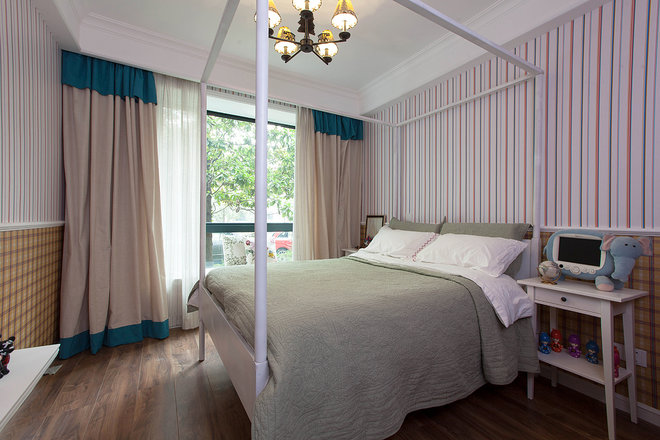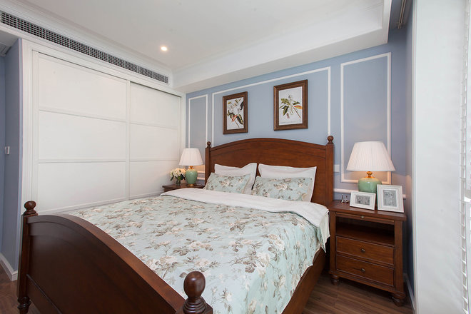 暖黃色的燈光為客廳增添溫馨感,布藝沙發(fā)質(zhì)感十足,讓人有一種下了班就想“攤”在上面玩手機(jī)的感覺(jué)。歐式風(fēng)格里的每一件裝飾,都體現(xiàn)著精致。次臥用的是非常清新的淺藍(lán)色,配以碎花的床飾,就能輕易打造出一個(gè)自然氣息十足的休息空間,木質(zhì)床具彰顯復(fù)古韻味。