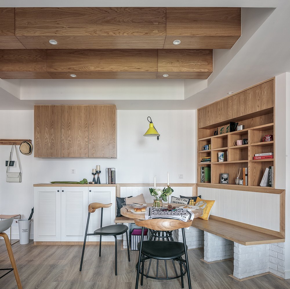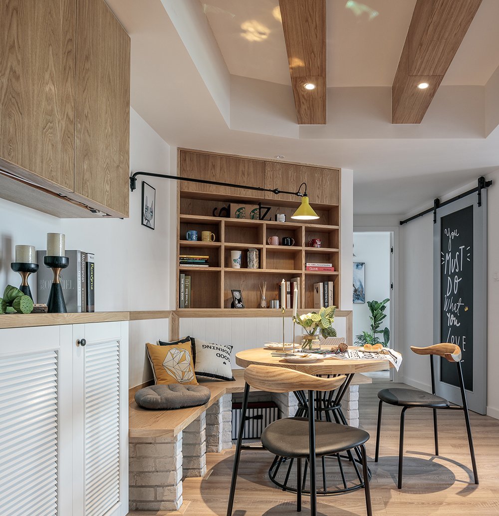 北歐風(fēng)清新自然,時(shí)尚感十足,實(shí)用性也很強(qiáng),加上裝修成本并不算高,所以是很多中小戶型業(yè)主在裝修時(shí)候的首選??蛷d雖小但勝在舒適,餐廳沿著墻面做了個(gè)卡座,節(jié)省出了更多空間。兒童房趣味性十足,幾乎不擺放家具,讓小朋友能安全玩耍。