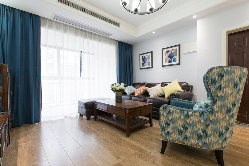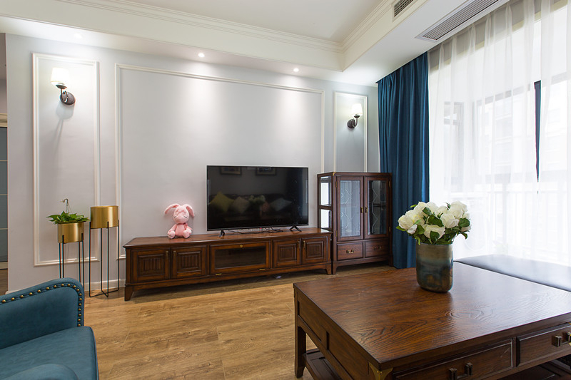 南寧瀚林錦城毛坯房78平米美式風格裝修案例效果圖