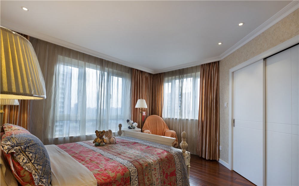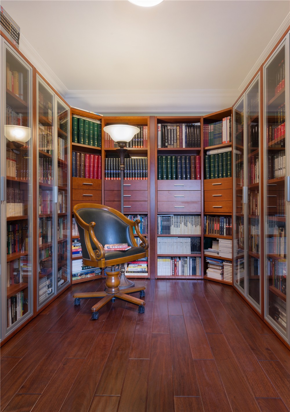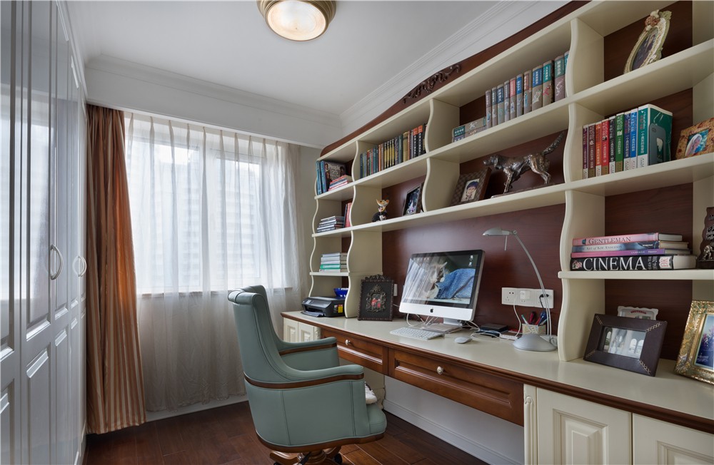 客廳的沙發(fā)選取的是很清新的藍(lán)色,白色包邊,是家里的女主人很喜歡的款式。因為業(yè)主有藏書看書的喜好,所以書房幾乎三面都是書柜,玻璃柜門的設(shè)計,既能防塵,又能迅速找到自己需要的書籍。臥室采光很好,所以要適當(dāng)增加遮光簾,方便午睡。