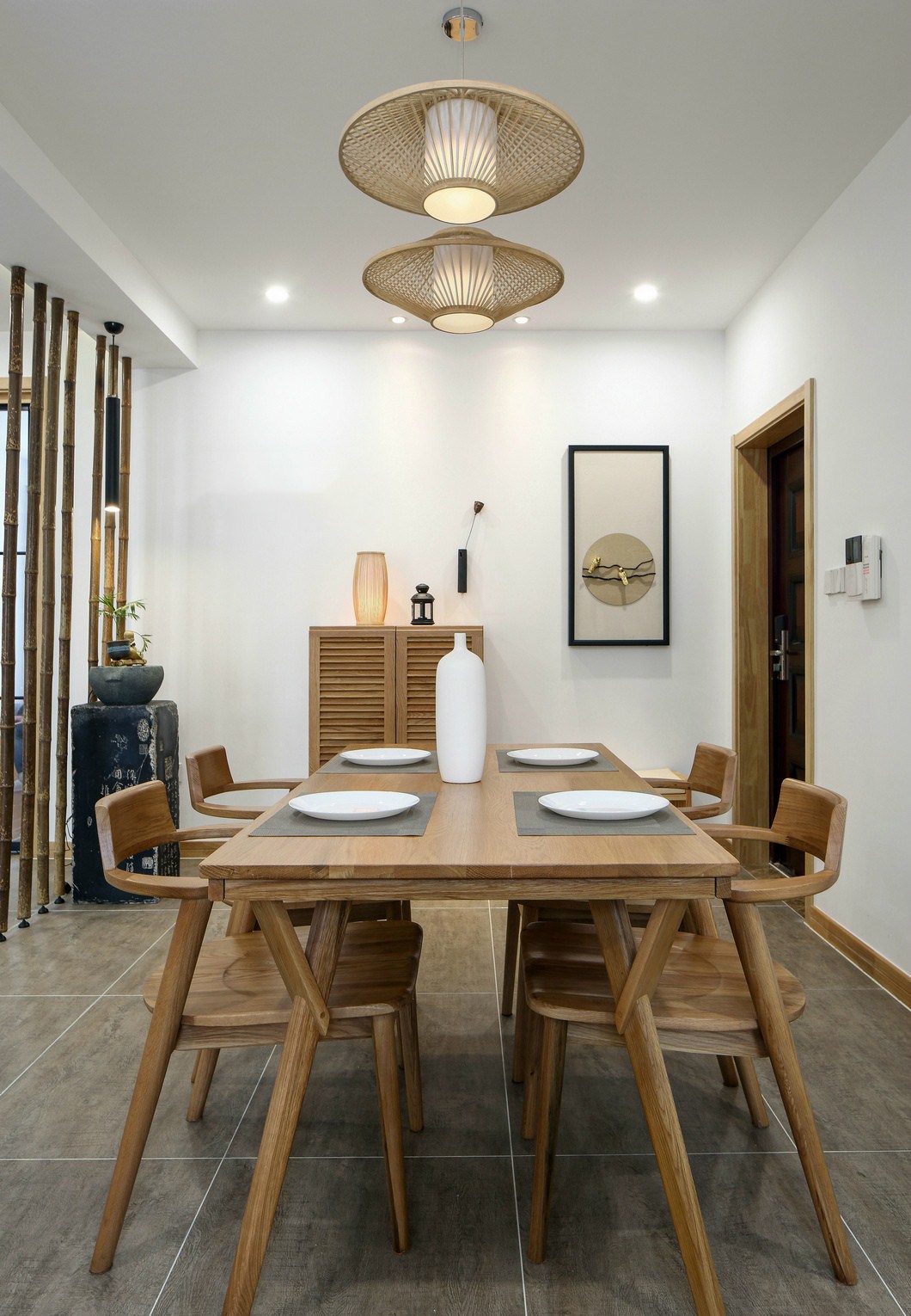 蘇軾在《于潛僧綠筠軒》寫道:“可使食無(wú)肉,不可居無(wú)竹。”業(yè)主本身就很喜歡竹子的氣節(jié)與風(fēng)骨,所以設(shè)計(jì)師在業(yè)主家里,做了一面竹子樣式的屏風(fēng),隔開了客廳與玄關(guān),跟詩(shī)人隱居竹林有異曲同工之妙,設(shè)計(jì)上很有巧思。