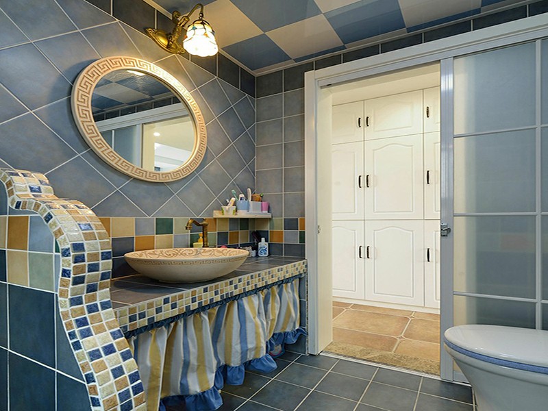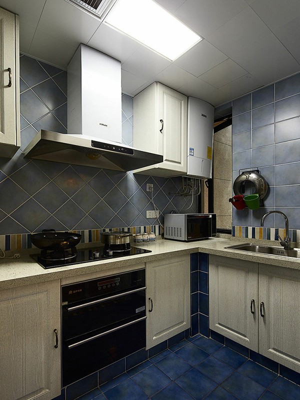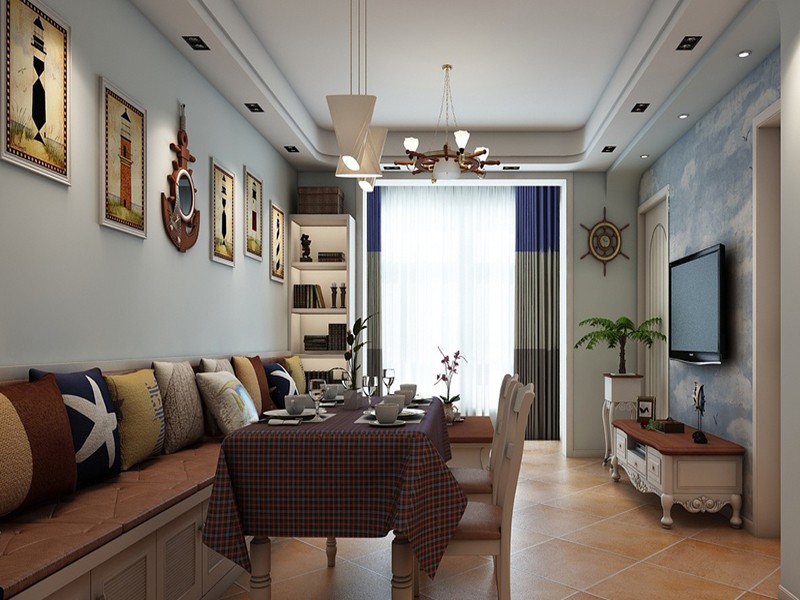 業(yè)主喜歡地中海風(fēng)格的異域風(fēng)情,在看了幾套裝修案例之后,表示自己不是很喜歡地中海風(fēng)格常用的海藍(lán)色,所以設(shè)計師在藍(lán)色里加了一點(diǎn)灰調(diào)。這套二居室的主色調(diào),與其說是藍(lán)色,不如說是更貼近于灰色,有一種低調(diào)、成熟、穩(wěn)重的美感。