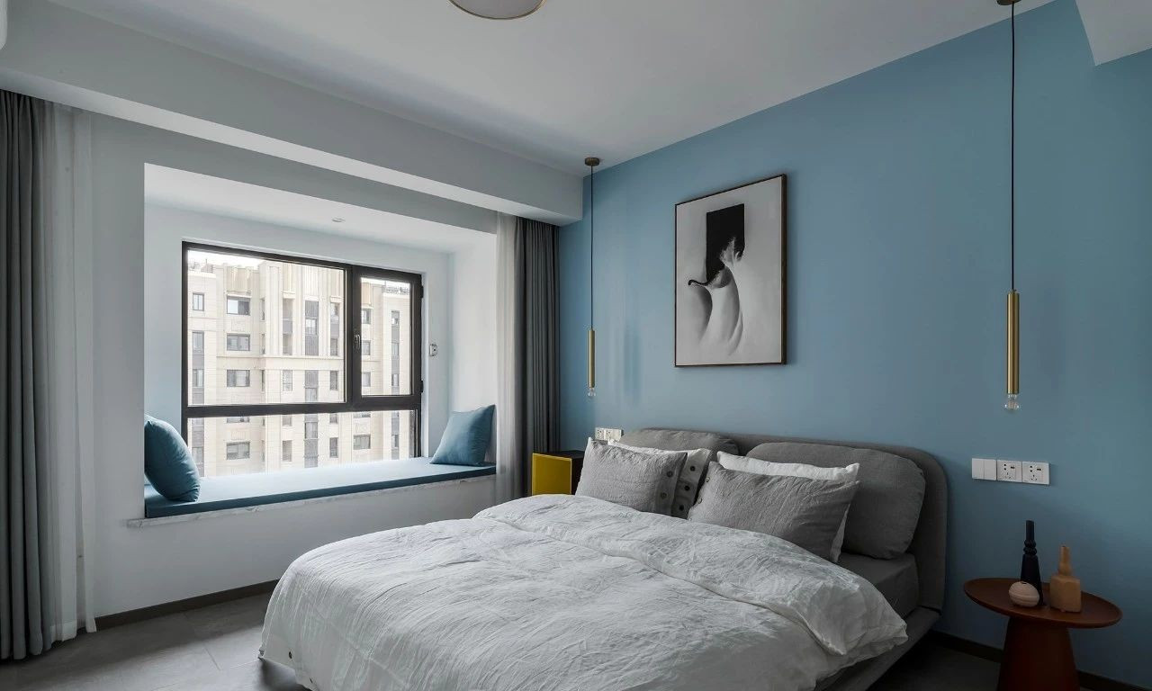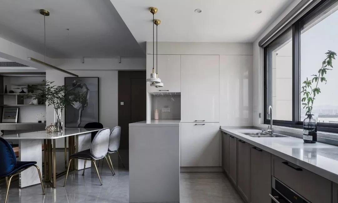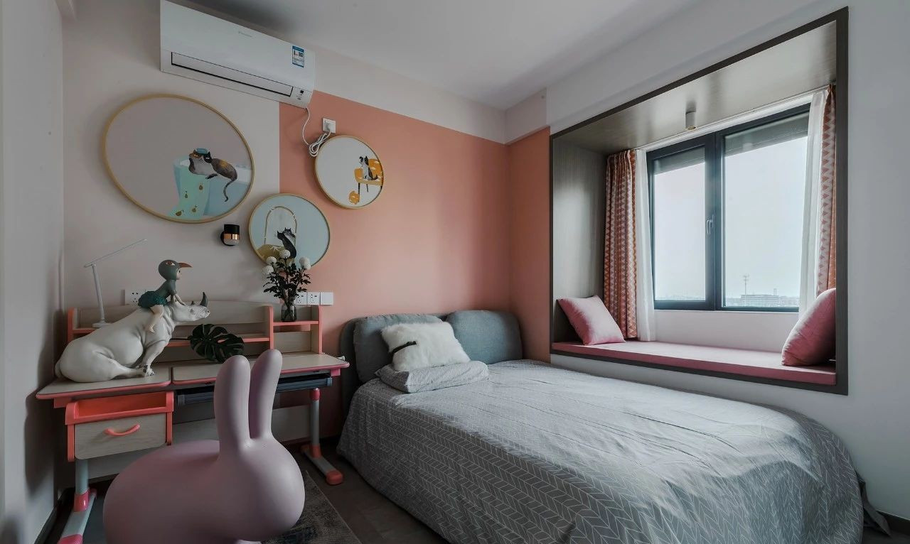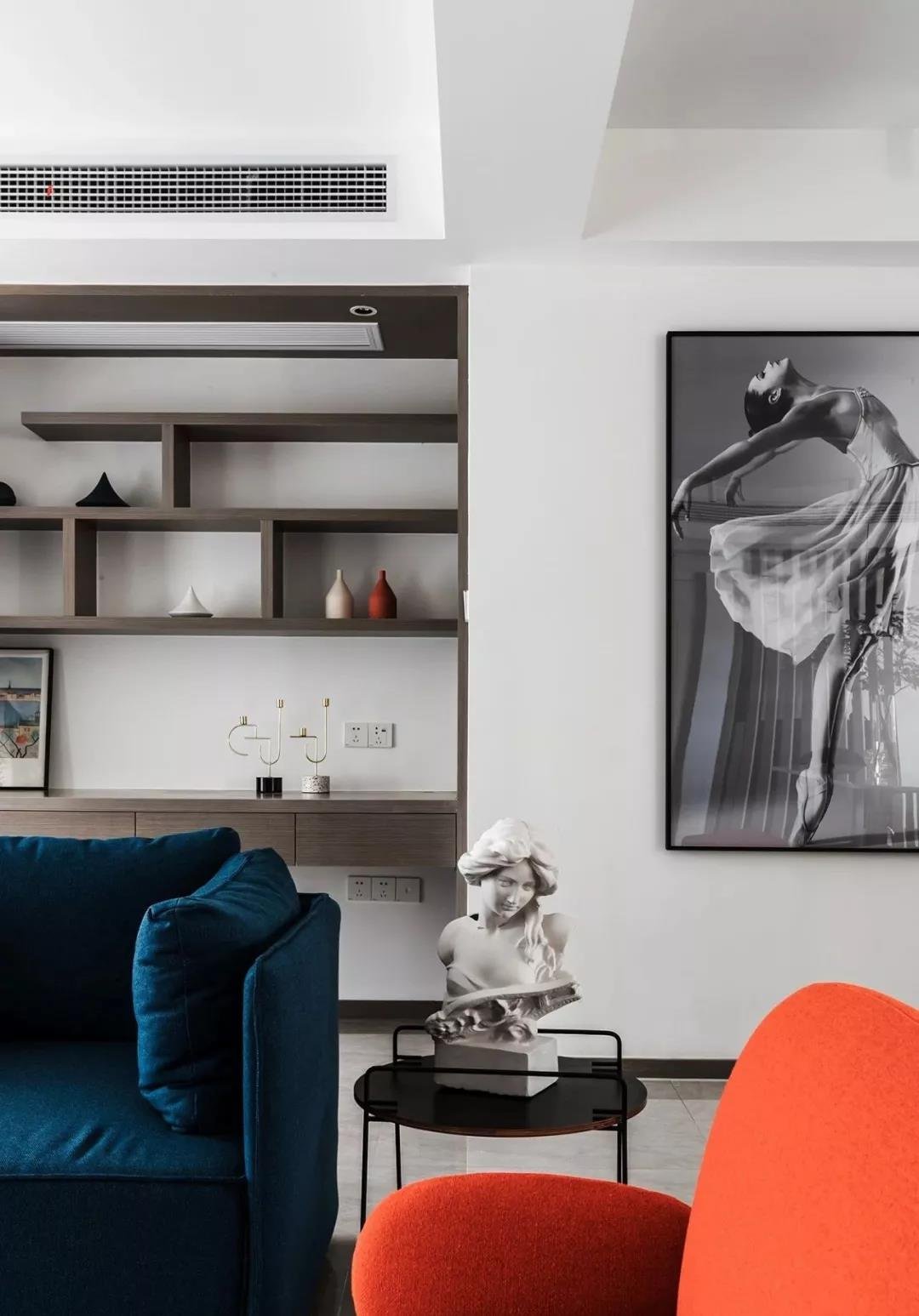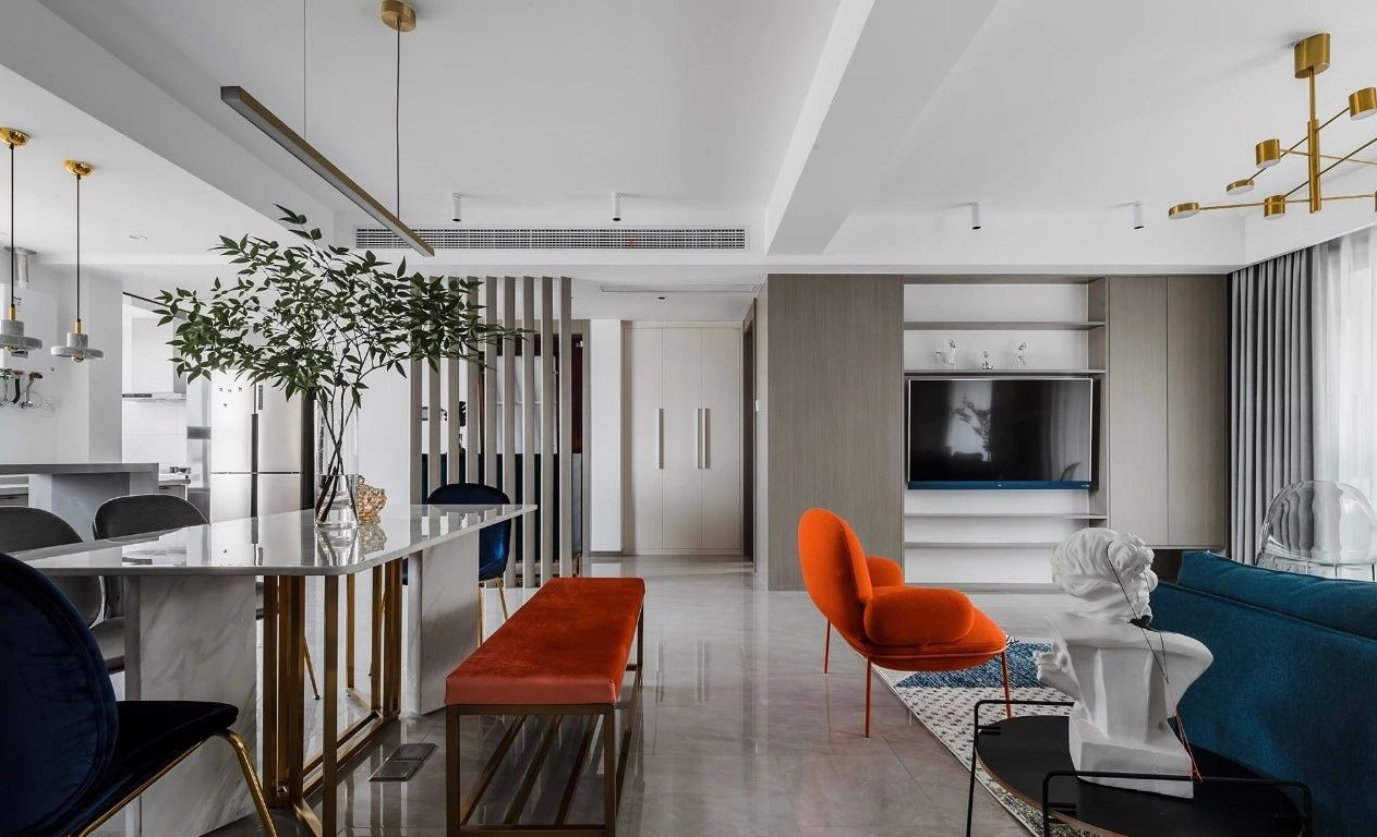 玄關(guān)采用斜面格柵結(jié)合玄關(guān)柜,過道將客餐廳在空間上進行簡潔的軟性分割,撞色的設(shè)計為客廳注入活力,整套房屋的設(shè)計就是兼具優(yōu)雅和理性,活潑的同時又帶著一點克制,很適合年輕的業(yè)主。