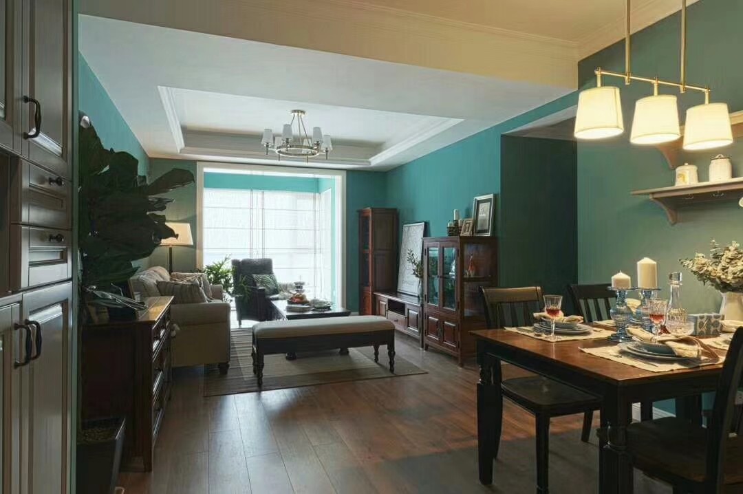 南寧瀚林錦城毛坯房78平米美式風格裝修案例效果圖